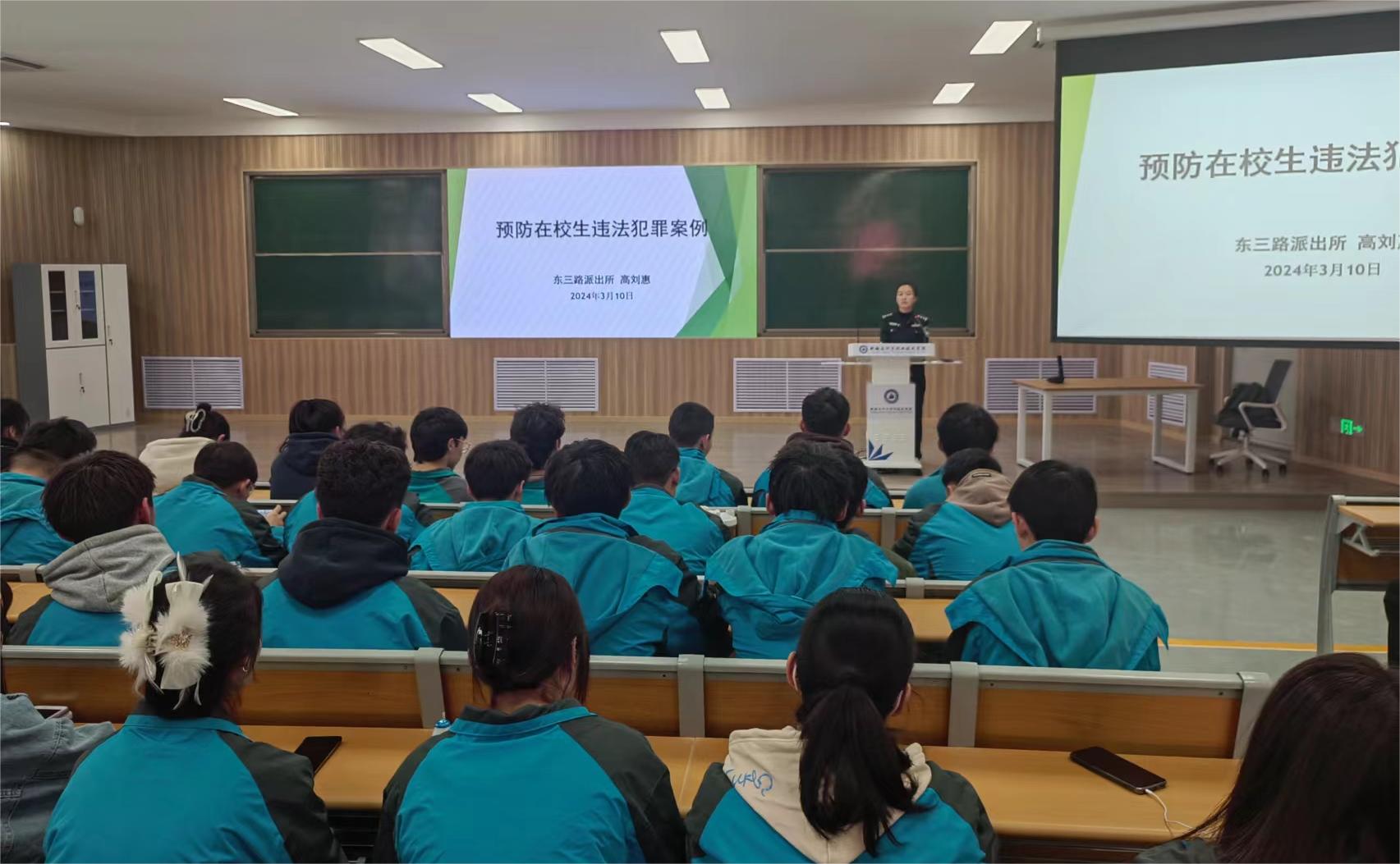 深化教育、学践结合,织密校园法治安全网。学院邀请法治副校长东三路派出所所长袁坤、开发区分局政委唐伟及辖区民警入校开展18次法制安全讲座,围绕大安全法制教育、新型AI诈骗、不正当言论、软件洗钱等开展生动讲解,结束后开展了线上考试,参与学生多达8000余人,系列宣讲活动反响热烈,深受好评。3月11日晚,邀请120余名民警深入宿舍楼,围绕国家安全、电信网络诈骗、青少年犯罪等重点开展了一次特殊的法治宣传,引导学生们增强自我保护意识和能力。建立“学院—二级学院-班级”三级消防演练体系,组织消防逃生疏散演练,帮助同学了解逃生策略,熟悉疏散路线,掌握自救互救技能,引导师生树牢安全意识,切实筑牢安全防线。