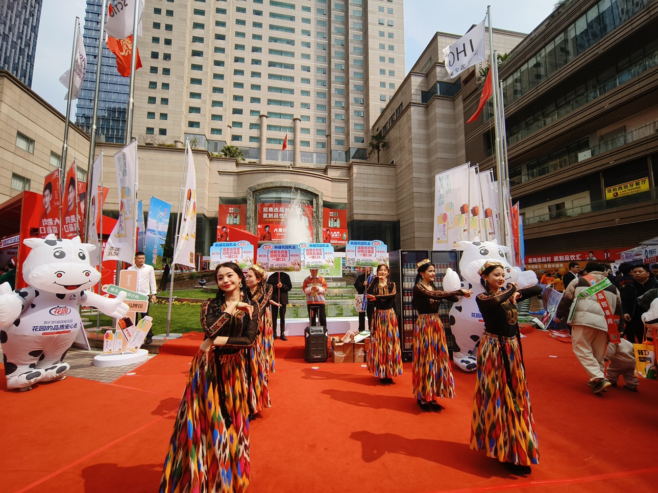 为充分发挥推广食品的地区特色、确保活动顺利进行,学院师生与企业工作人员精心布置了品牌特色展厅,开展产品宣传、歌舞表演等工作。交易会上,随着《美丽新疆》音乐响起,同学们跳起新疆舞,热情欢快的舞姿吸引众多参展观众,展位前人头攒动、热闹非凡。企业工作人员详细介绍企业品牌、新疆特色乳制品及制作工艺,加深了来自全国各地的参观者对新疆特色食品的了解。