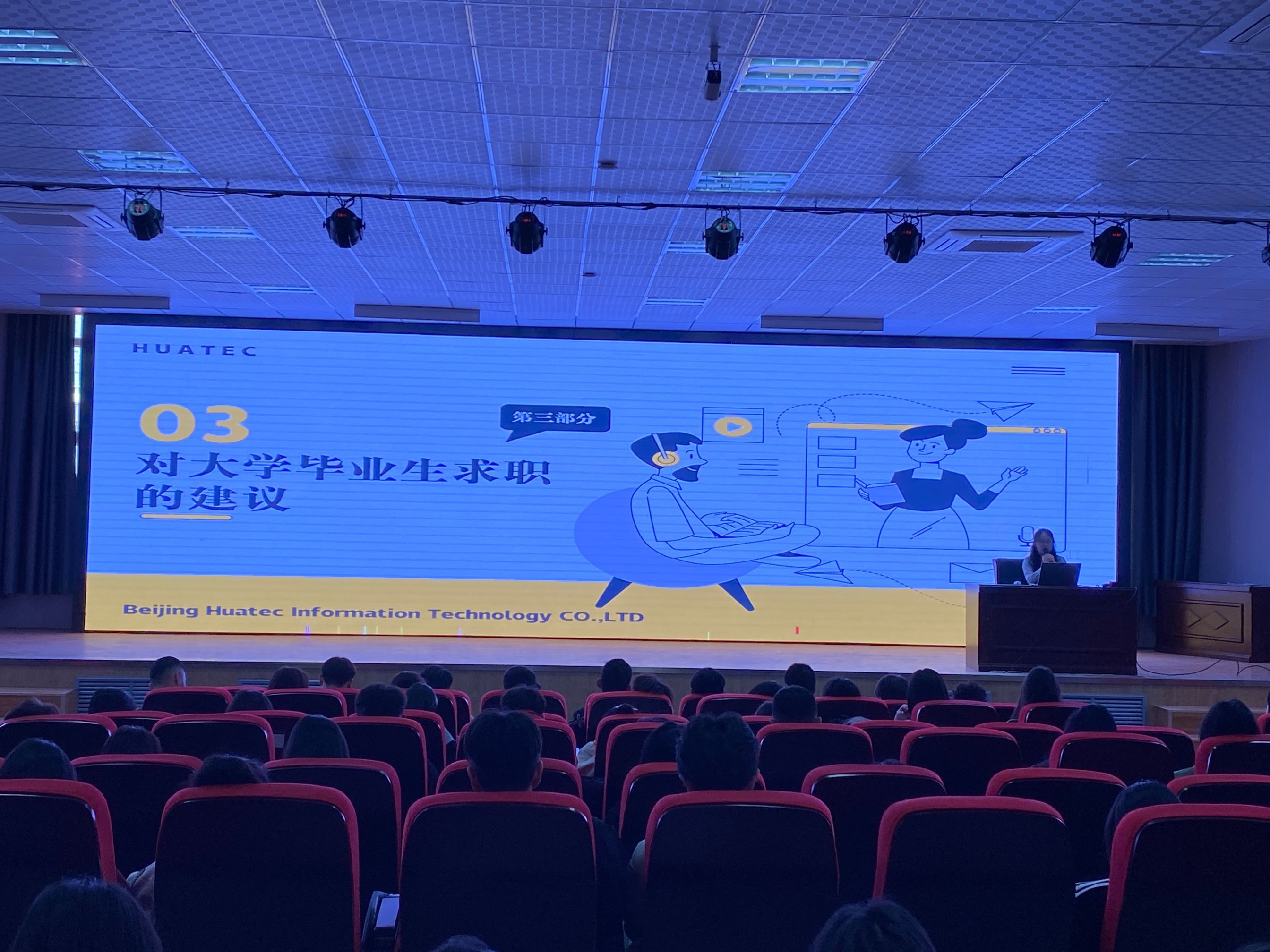 4月7日上午,以“筑梦青春志在四方,规划启航职引未来”为主题的企业宣讲会在行政北附楼举办。会上,北京华晟经世信息技术股份有限公司曹宇琼、刘德伟两位企业工程师针对当前就业形势开展分析,与学生开展交流,对学生职业规划问题进行答疑,呼吁同学们苦练专业技能,坚持追求卓越,结合自身兴趣与优势为走向工作岗位打好基础。