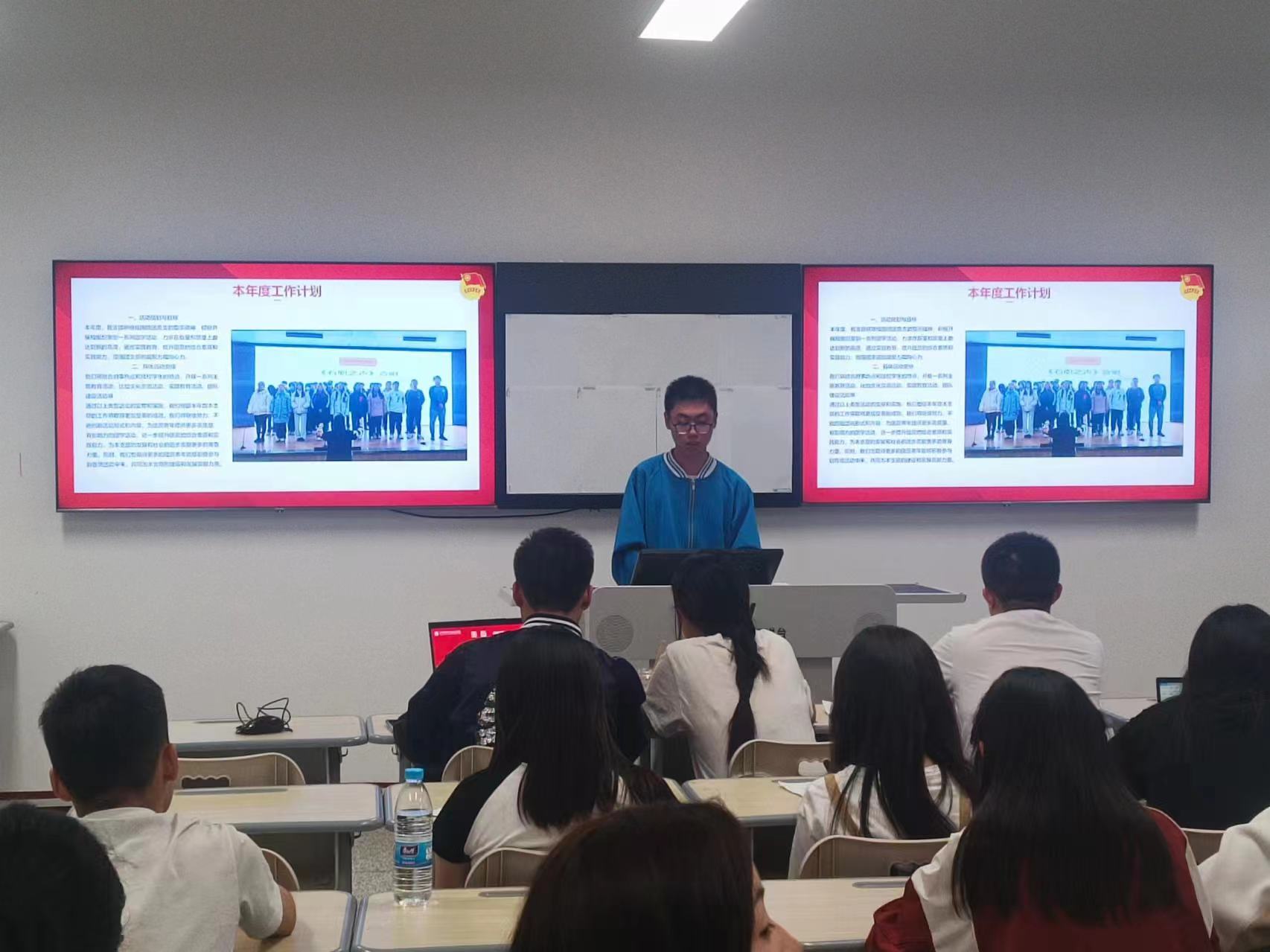 激昂的团歌声拉开了答辩会的帷幕。答辩中,各团支部汇报人从思想引领、学风建设、支部特色、志愿服务、社会实践等方面充分展示各团支部过去一年的建设成果,彰显出奋发向上、追求卓越、团结奋进的青春力量,并表示将在今后的团组织工作中继续积极进取,为团学管理添智献策。参会评委对各团支部日常工作取得成绩予以肯定,并对答辩内容进行了点评,提出针对性建议。各支部汇报结束后,团总支书记崔安琪围绕团支部工作的重要性、团日活动组织形式、团干部综合素质提升等方面对本次答辩进行总结。
