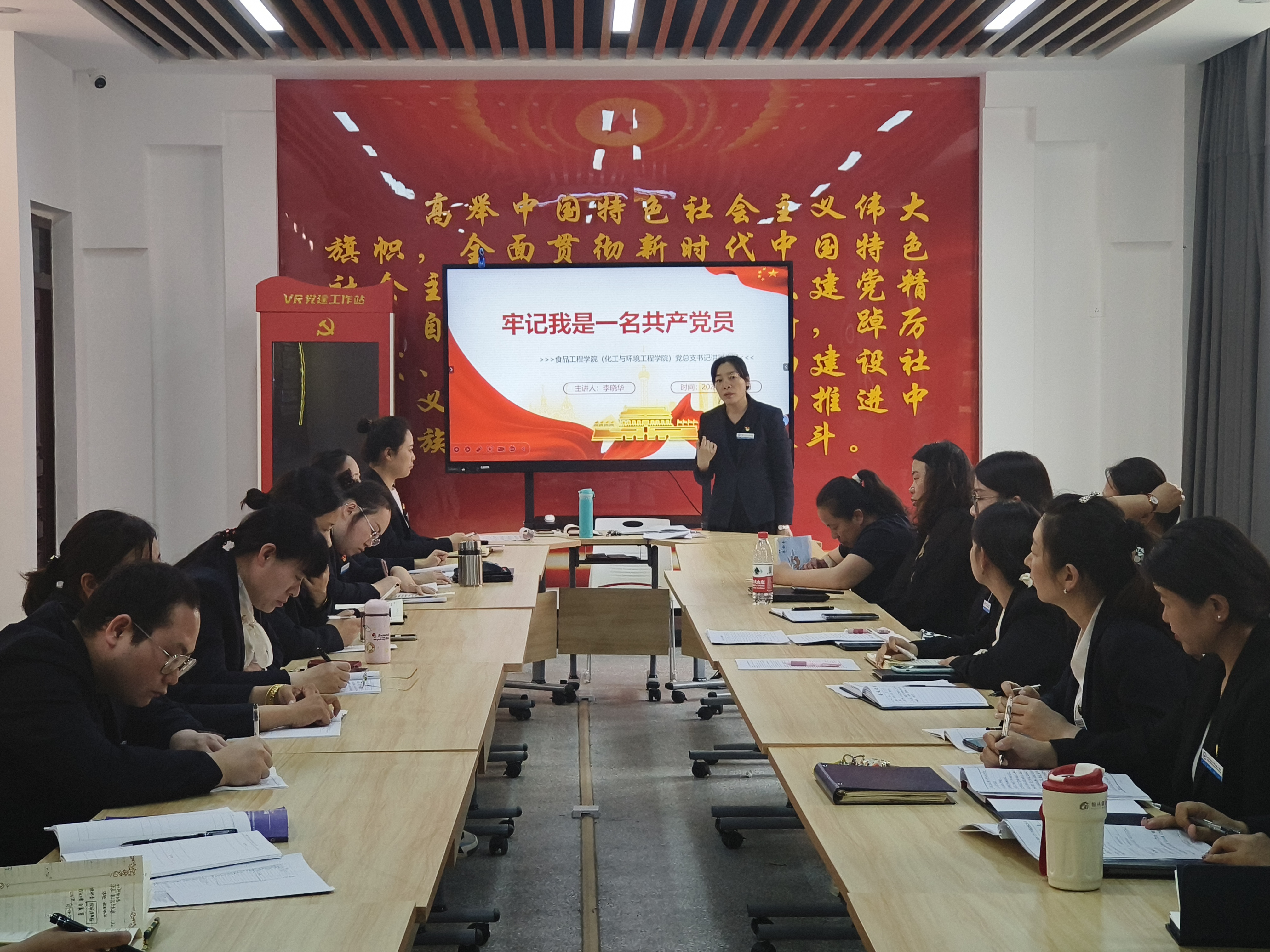 (赵燕燕 报道)为强化党员教师队伍建设,2024年4月25日下午,食品工程学院(化工与环境工程学院)组织学院全体党员教师在B104党建活动室开展党纪学习,学院党总支书记李晓华主持会议。