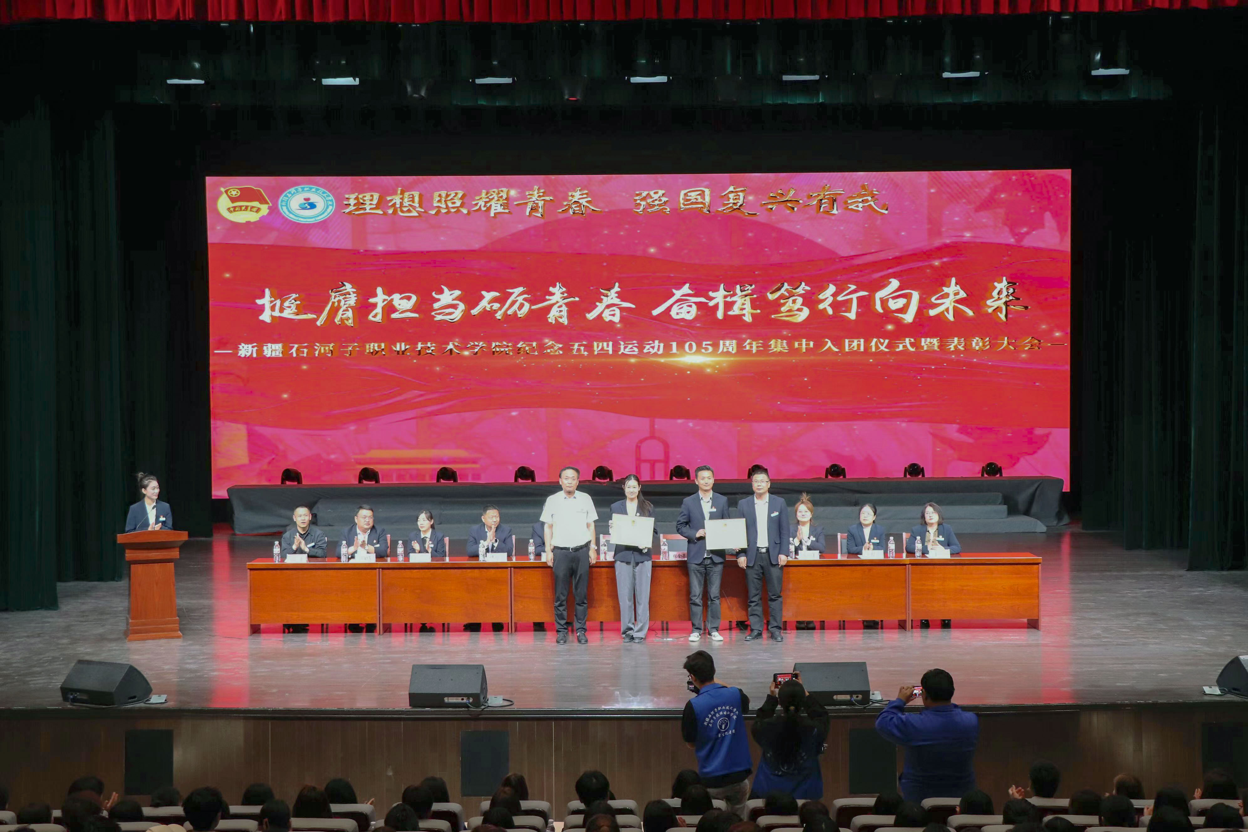晚会在庄严的国歌声中拉开序幕,表彰大会环节,列席领导为新团员代表佩戴团徽,颁发团员证,祝贺他们迈出成长中坚实的一步。会场内600余名新老团员阵容整齐、意气风发,高举右拳,面对团旗庄严宣誓。学院副院长张金果宣读《关于2024年Beat365中文官方网站“五四”评优表彰决定》。