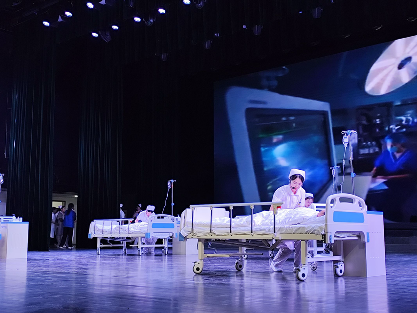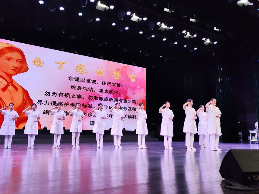 在《中国护士之歌》激昂的旋律中,文艺汇演正式开始,汇演以合唱、舞蹈、乐器演奏、技能展示等多种形式,为观众带来一场精彩纷呈的视听盛宴。校歌《石职之歌》诉说了学院辉煌历程,展现了职院学子的风采和魅力;舞蹈《春暖花开》展现了护理专业学生的蓬勃朝气和护理专业欣欣向荣的美好明天;钢琴和小提琴演奏《你的星河》《我和我的祖国》用琴声赞美祖国的山河壮丽,把汇演推向了高潮,激发了学生的爱国情怀;护理职业技能展示心肺复苏、静脉输液环节,展演学生明确到位的专业用语、娴熟精准的技能操作以及分析问题、解决问题的临床思维,充分体现了“准护士”们的专业素养;诗朗诵《歌颂护士》表达了护理专业学生对护理前辈的敬意和钦佩。汇演尾声《授帽仪式》,伴随着庄严的乐曲,在场全体护理专业学生严整着装,在老师的带领下全体起立,高举右拳庄严宣誓,一句句掷地有声的铮铮誓言在每位宣誓者的心中回响。
