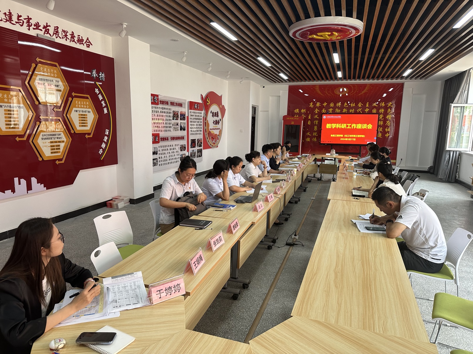 (石妍 报道)为切实提升学院教师的科研能力与研究水平,推动学院教科研工作高质量开展,2024年5月17日上午,食品工程学院(化工与环境工程学院)于学院职业教育活动周期间,在鸿智楼A106会议室开展教学科研工作座谈会。江苏农林职业技术学院专家团队、学院科研处负责教师、食品工程学院领导及专业教师参加会议。