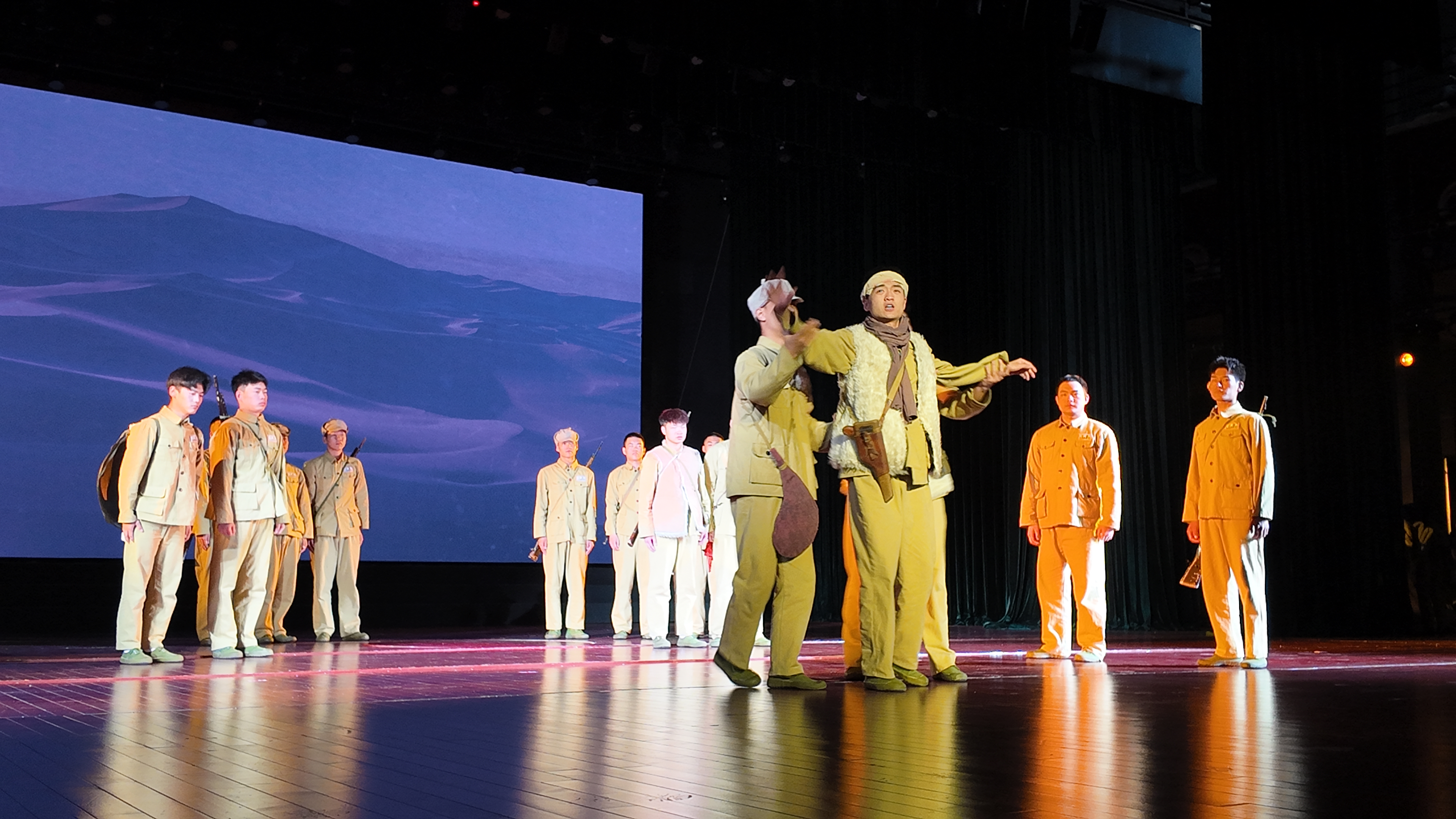 自编、自导、自演大型舞台剧《大漠誓言》是Beat365中文官方网站积极践行习近平文化思想,深入挖掘和有效运用兵团历史和兵团精神,大力推进文化润疆实践的重要成果。剧目历经9个多月精心策划、打磨及排练而成,130余名演职人员均为学院师生。在兵团成立70周年之际,原创舞台剧《大漠誓言》的编排和演出,充分展现兵团红色文化在校园文化中的传承和发扬,有温度、有看点、有烟火气,力求让年轻人能够代入与共振,是后人对革命先辈的缅怀致敬,对坚守信念的讴歌礼赞,也让艺术价值和对于革命精神的传承连接更加紧密。