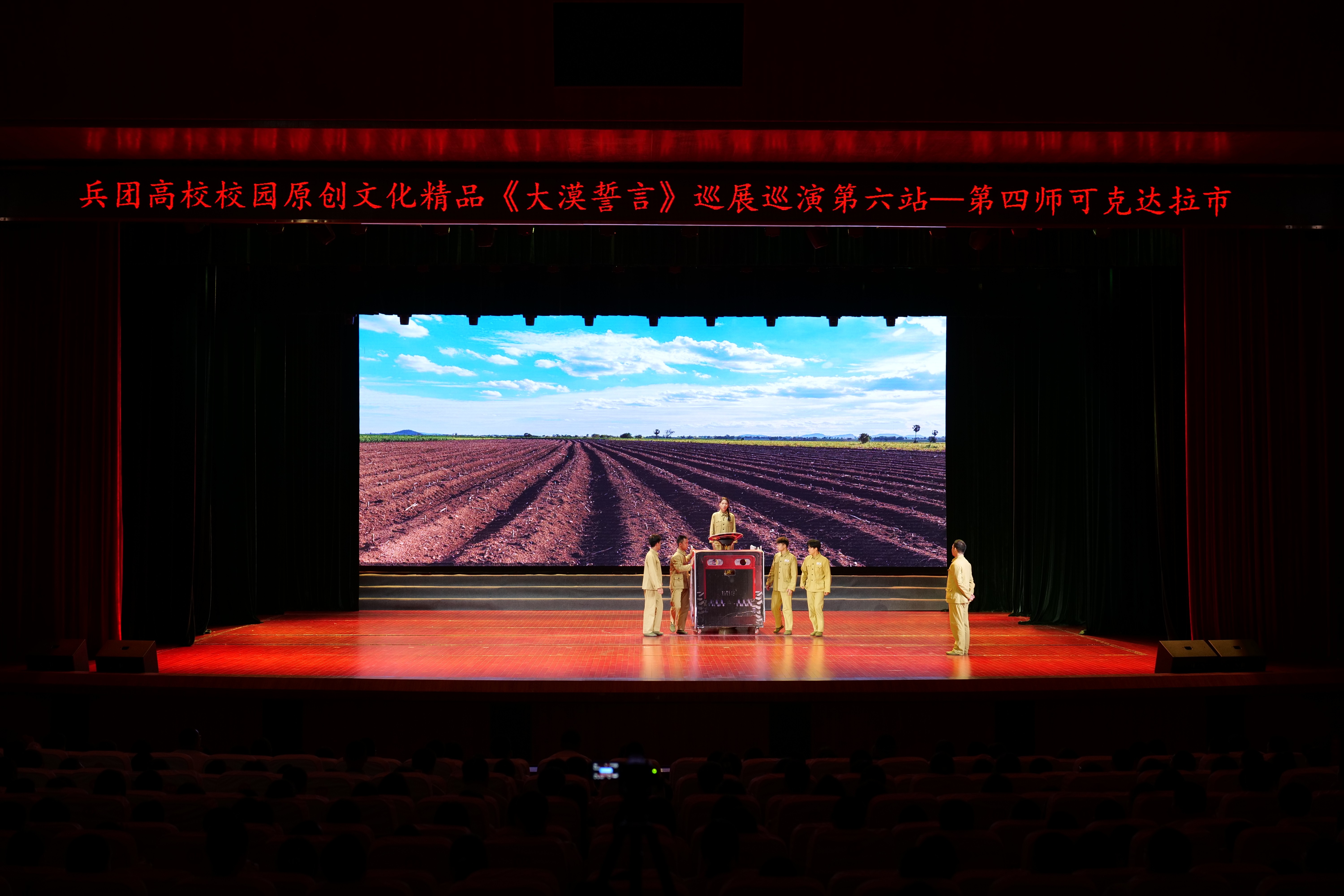 (王需 杨慧报道)2024年5月23日,一场以兵团高校原创文化为核心的校园精品演出《大漠誓言》在赞誉声中圆满完成。本次巡回演出由兵团教育局主办,新疆石河子职业技术学院负责承办,得到第四师可克达拉市教育局的大力支持,为可克达拉市的企事业单位代表、学生代表等500名观众带来了一场精彩的表演。