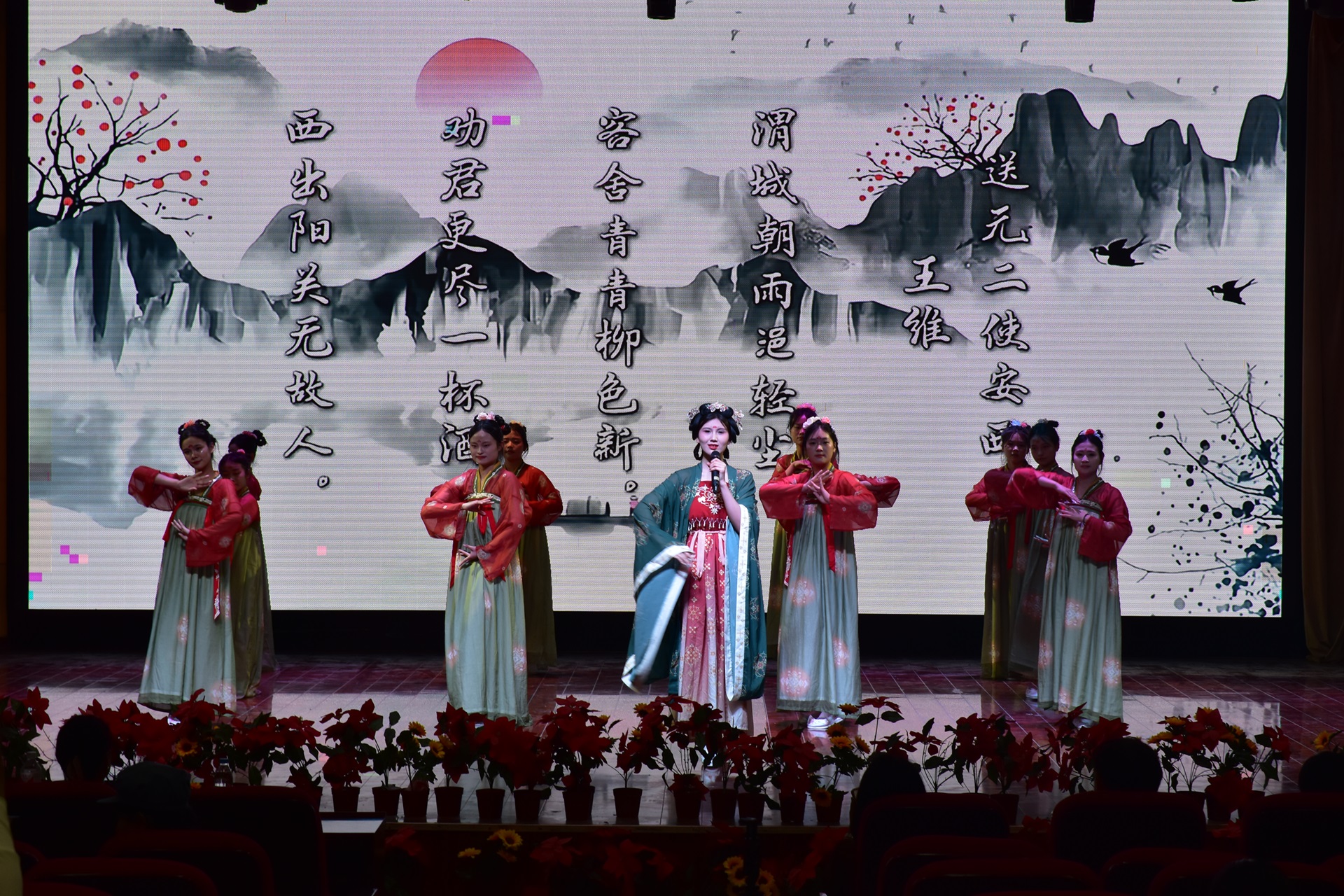 决赛分为自选篇目和即兴抽签两个阶段,以中、高职语文教材优秀传统文化内容为核心,内容涵盖经典名篇、古诗词、文言文等篇目,全方位考验参赛选手们的国学积累、临场应变和应用能力,所有参赛选手必须使用普通话、脱稿朗诵。在即兴抽签诵读阶段,每支参赛队伍推选三名选手依序根据比赛现场抽取朗诵的题目即兴朗诵,内容分为古典诗文和补充完整古典诗文名句朗诵,一篇篇经典美文、一首首诗歌佳作在选手们声情并茂的朗诵中被赋予了时代的活力与生命,比赛精彩的对决和深情的诵读让现场观摩学生产生了“美的享受、德的熏陶、智的启迪”。