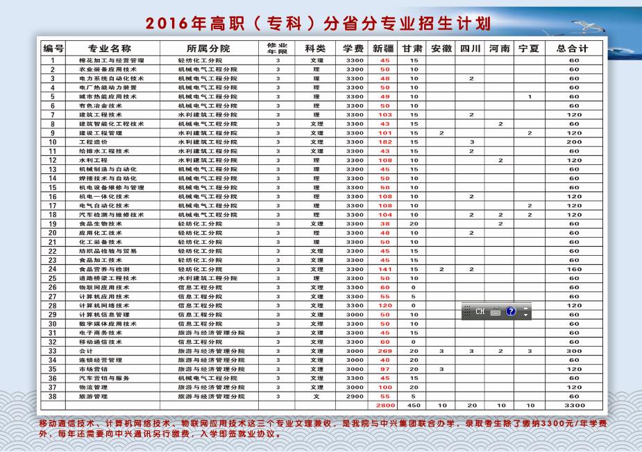 2016年高职分省分专业招生计划