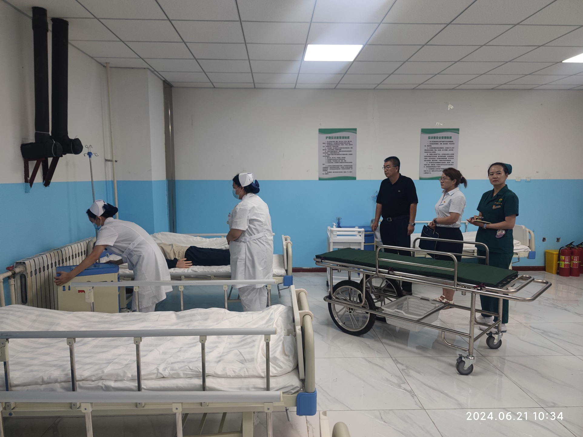 (白培宏 卡米来 报道)为进一步提升和规范学生专业技能操作,使学生更好地适应未来职业生活,2024年6月21日,现代服务学院开展护理技能实训考核,考核从仪容仪表、礼仪规范、基础操作等方面全面考察学生职业能力和规范,护理专业22级178名学生参加考核。