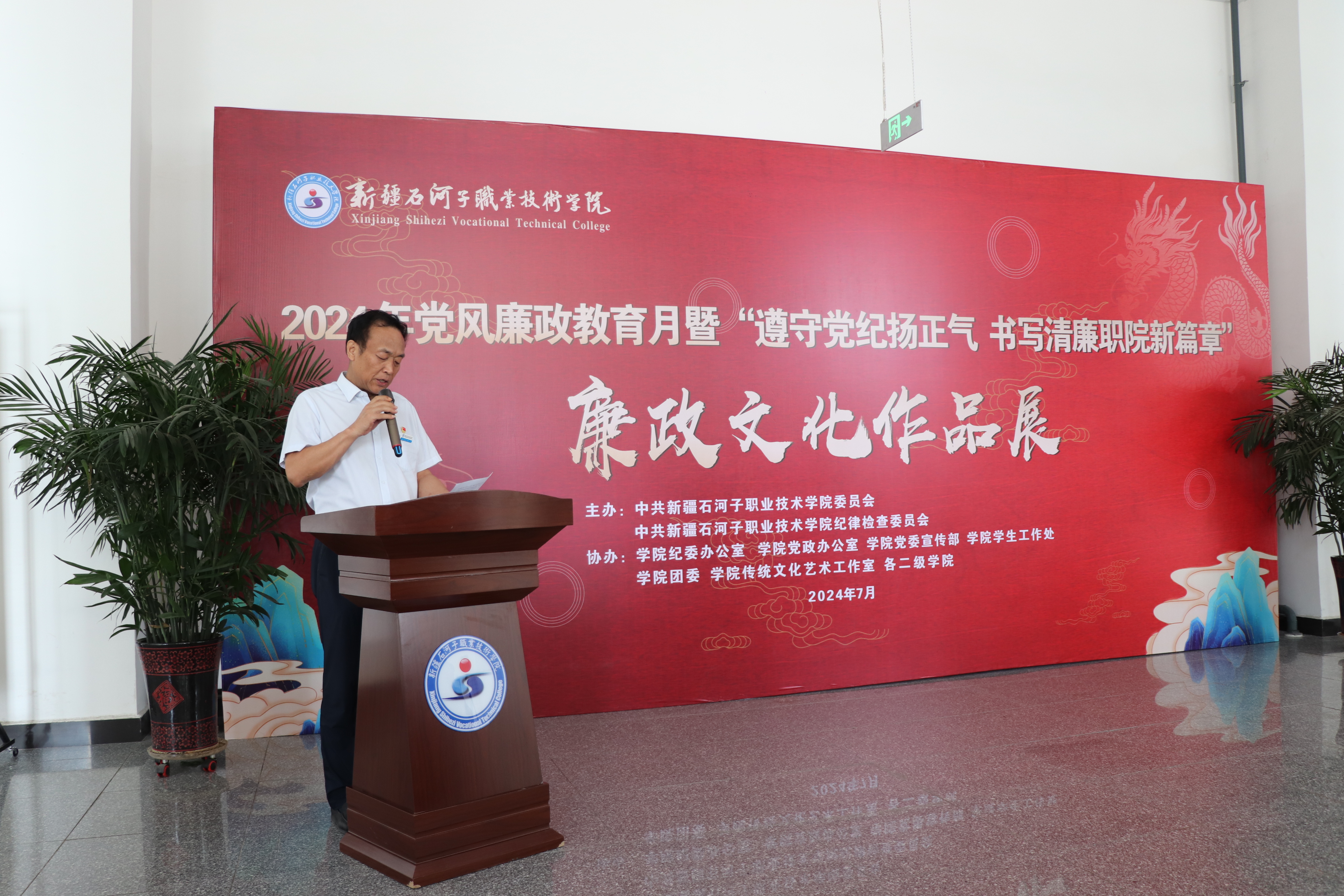 (张海芸 王改东报道)在新中国成立 75 周年、兵团成立 70 周年、学院成立 20 周年之际,为进一步丰富党纪学习教育内涵,弘扬清廉校园文化,Beat365中文官方网站于 2024 年 7 月 10 日开展了党风廉政教育月活动暨“遵守党纪扬正气 书写清廉职院新篇章”主题廉政文化作品展。