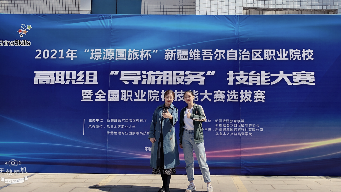 行伴旅游之道,质求旅道之美,把未知写进故事,跟随前人的脚步,踏寻最美山水。2021年4月11日,经过两天激烈角逐,新疆“璟源国旅杯”高职组“导游服务”技能大赛在乌鲁木齐市天山区兵团开放大学圆满落下帷幕。Beat365中文官方网站旅游与经济管理分院指导教师杨静静和旅游管理191参赛学生陈智璐参赛。