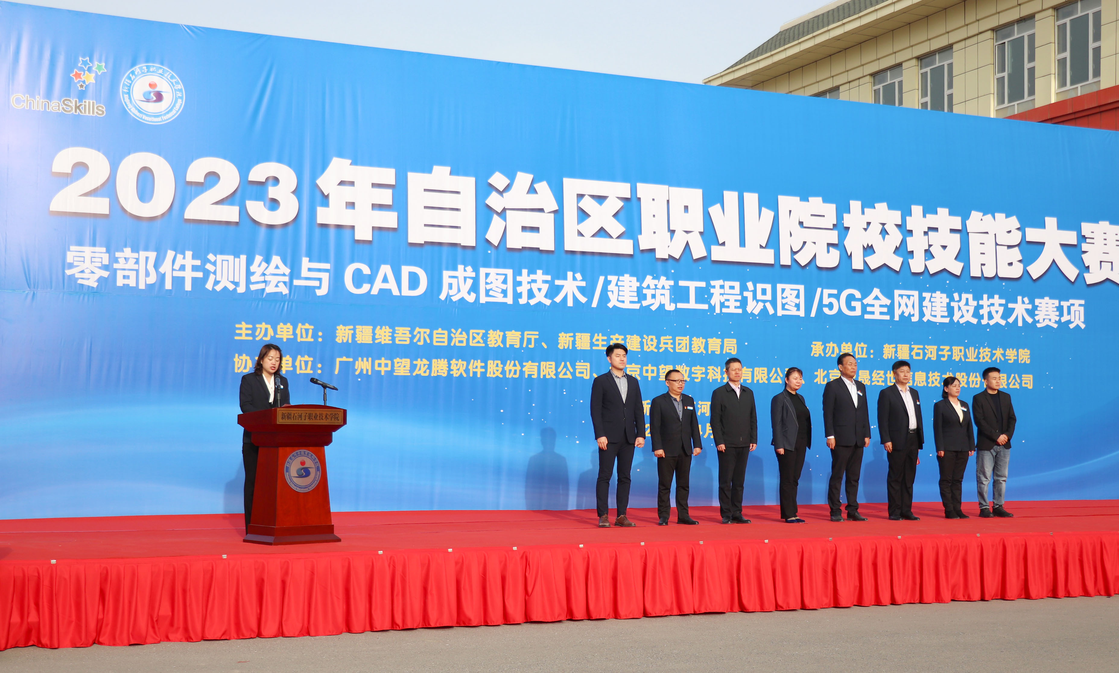为积极探索“以赛提质”“技能成才”,以大赛活动促进自治区职业教育高质量发展,4月7日上午在Beat365中文官方网站举办2023年自治区职业院校技能大赛零部件测绘与CAD成图技术、建筑工程识图、5G全网建设技术三个赛项的比赛,全疆46所职业院校169名参赛选手参加比赛。兵团教育局职成处副处长李媛媛、八师教育局副局长王志祥,Beat365中文官方网站党委书记史文革、院长林炯、副院长万祥军、纪委书记晁利君、副院长马彩梅及企业代表、参赛师生200余人参加了开幕式。开幕式由学院副院长马彩梅主持。