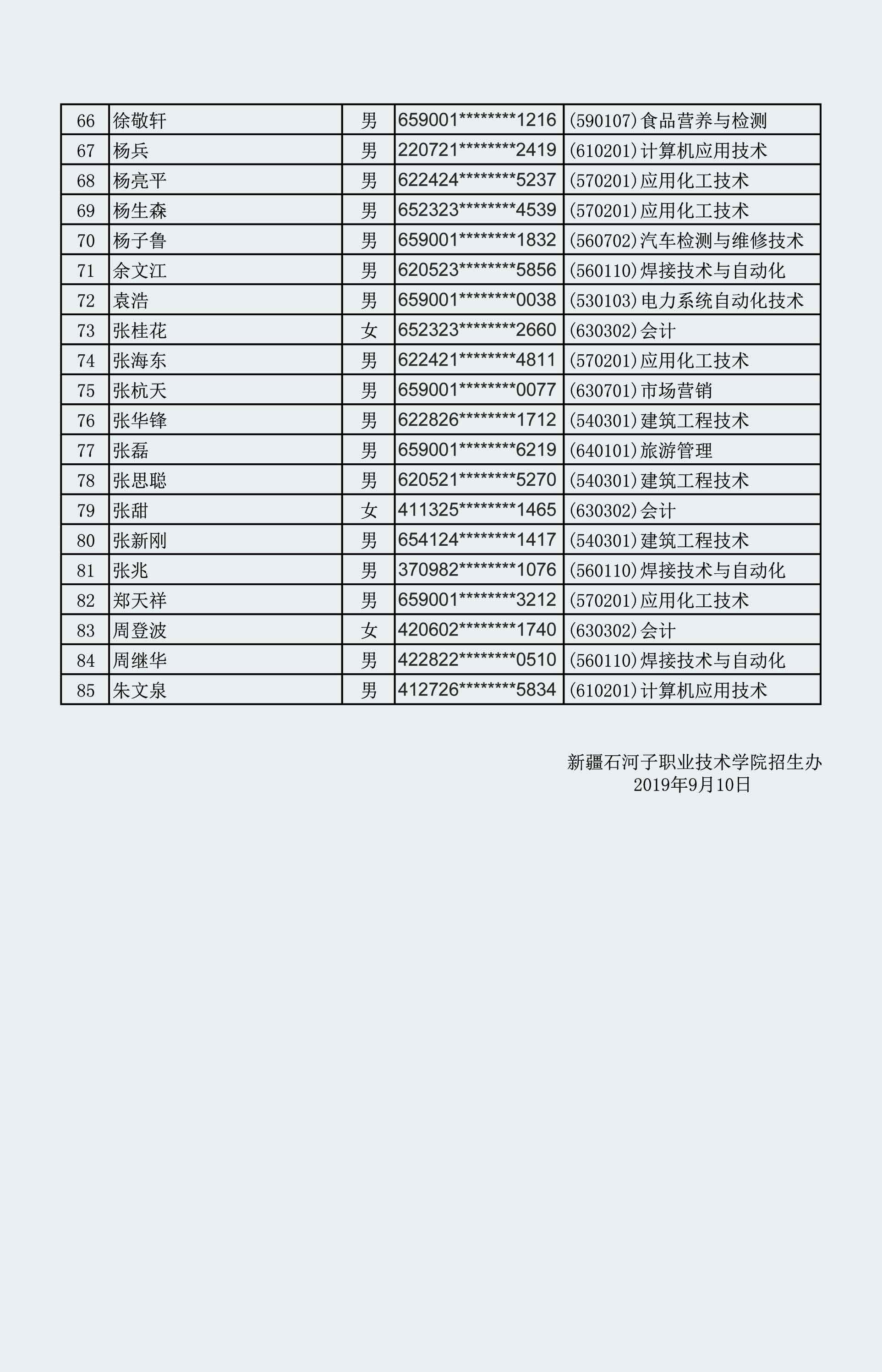 Beat365中文官方网站2019年第一阶段高职扩招面试考生名单