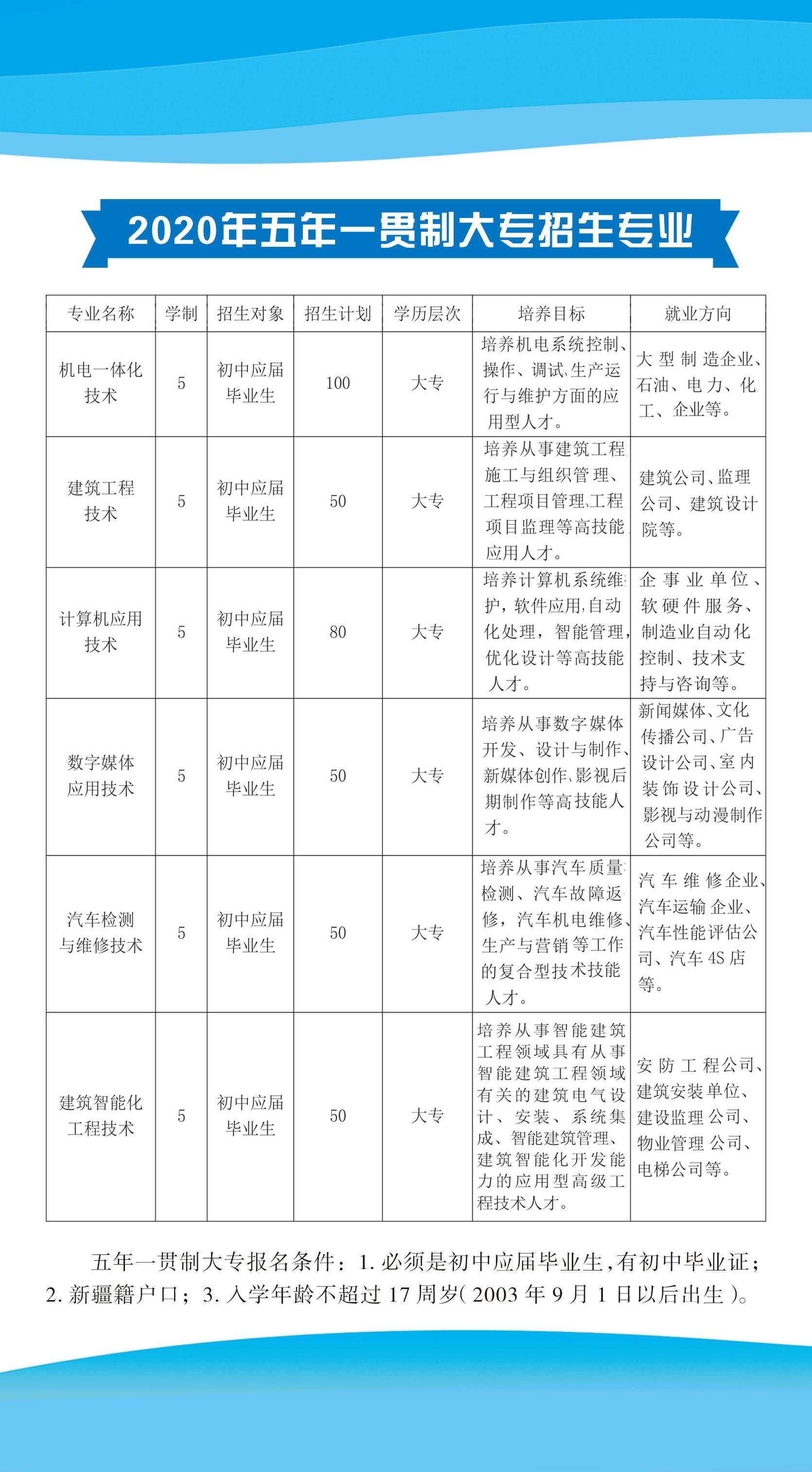 2020年优秀中职毕业生直升高职(专科)招生简章