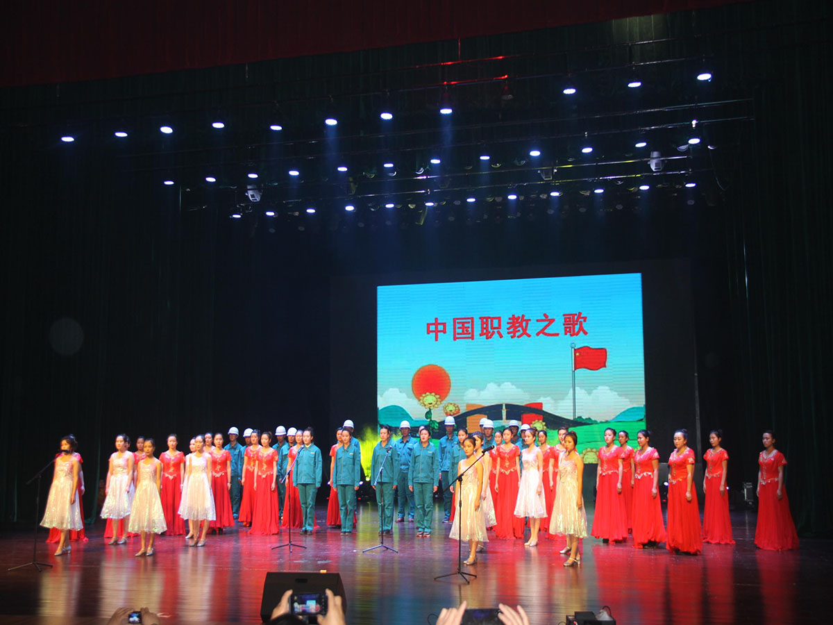 展演活动中来自兵团各职业院校的学生分别表演了诵读、民族舞蹈、独唱、跆拳道、古筝、书法、剪纸等才艺,演出活动异彩纷呈、高潮迭起,不时响起阵阵掌声。最后,颁奖活动在我院学生表演的《中国职教之歌》大合唱中圆满结束。