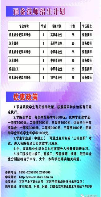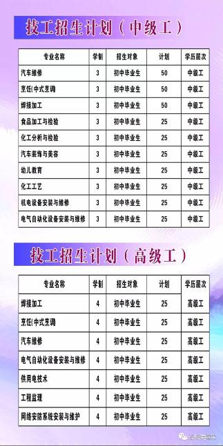 2017年技工、高级工、预备技师招生计划