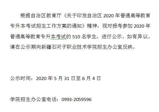 | 2020年自治区普通高等教育专升本考试普通高职(专科) 应届毕业生推荐名单汇总表 | |||||