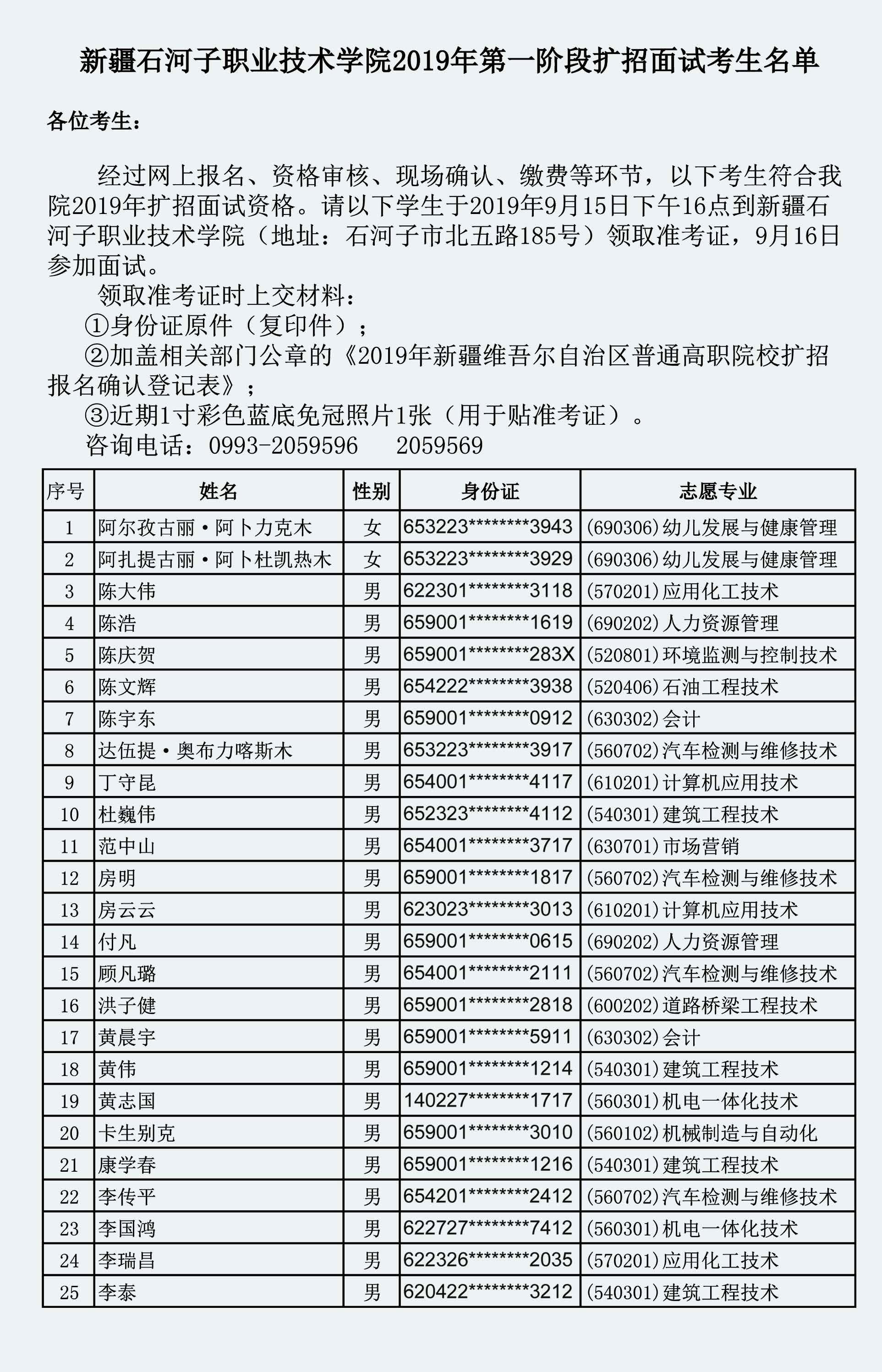 Beat365中文官方网站2019年第一阶段高职扩招面试考生名单