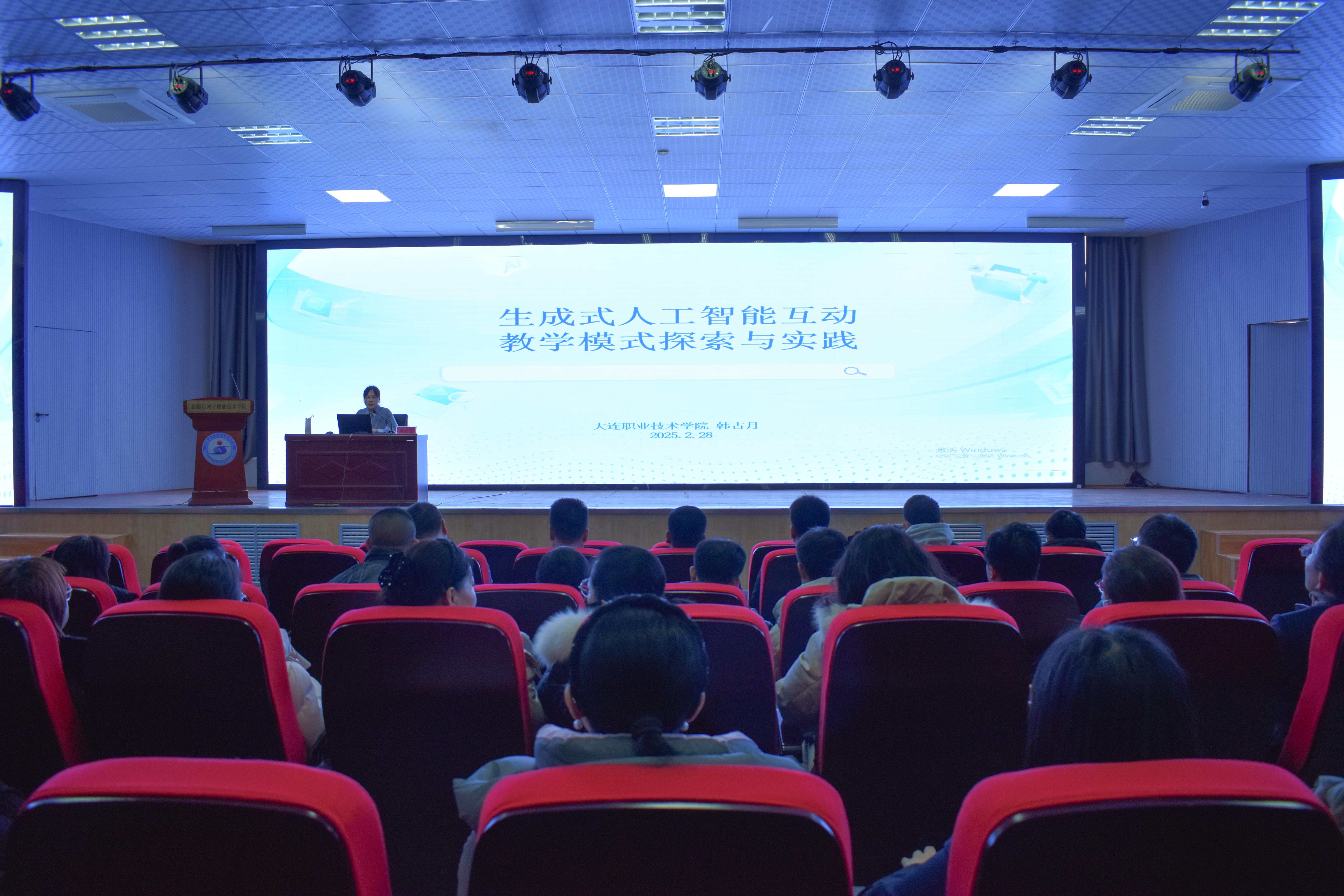 当天上午,在“AI赋能教育教学改革”专题教师培训暨2024-2025学年第二学期开学培训开班仪式上,副院长张金果指出,作为教育工作者,必须紧跟时代步伐,持续提升自身数字化素养,主动接纳新技术,革新传统教育教学方法。韩古月教授分享了“生成式”人工智能互动教学模式探索与实践,她详细剖析了生成式人工智能在教学场景中的多元应用。此外,还分享了大连职业技术学院在相关实践中的成功案例。