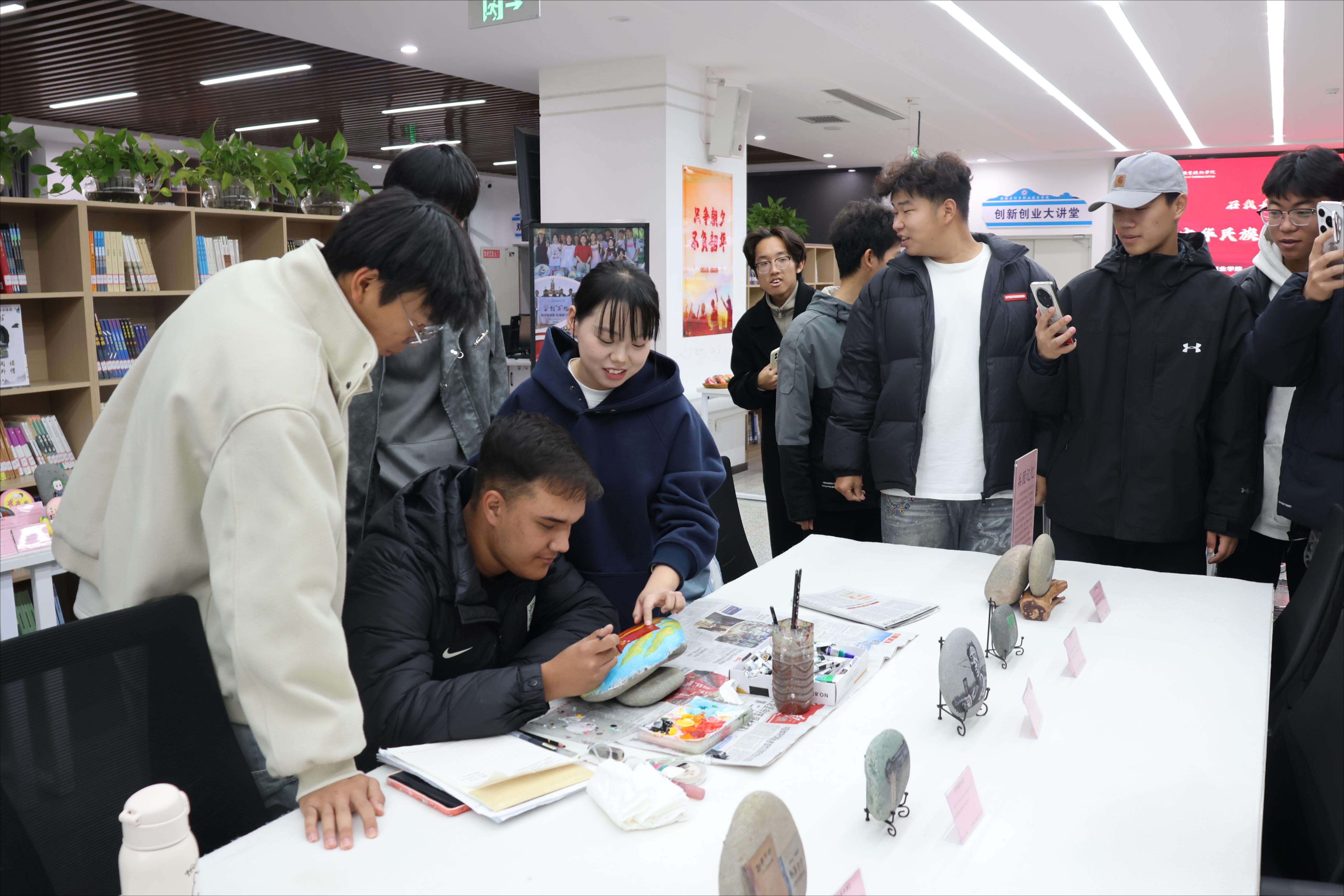 “这些石头画不仅是艺术创作,更是传承中华文化、赓续兵团精神的实践载体。”负责承办石头画展的创新创业学院负责人杨涵教授介绍,从采石、创作到梳理故事脉络,师生在过程中已与兵团精神产生深度共鸣,“这本身就是一堂生动的思政实践课”。