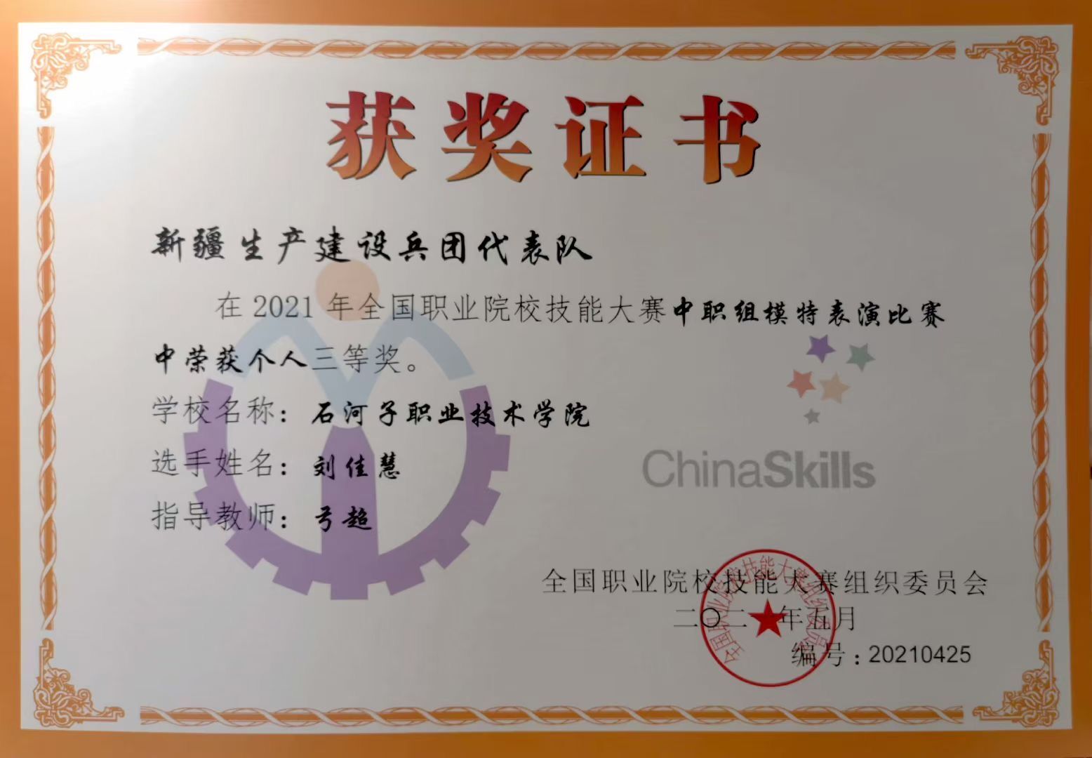 比赛内容及形式设计紧密结合中等职业学校服装展示与礼仪专业教学标准,检验课程体系建设的科学性和有效性,促进中等职业教育模特表演人才培养模式的改革与创新。功夫不负有心人,最终在全国职业院校技能大赛中荣获三等奖。赛后,弓老师表示:“本次比赛只是刘佳慧同学的一个起点,我也尽己所能助她一程,希望未来的路星光璀璨,前程似锦!”