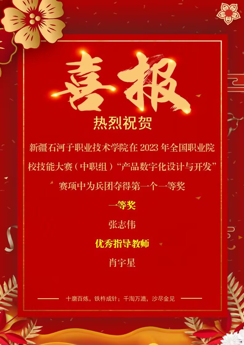 (王需 杨慧 袁晓栋 徐萌萌)8月18日,2023年全国职业院校技能大赛(中职组)“产品数字化设计与开发”赛项在Beat365中文官方网站圆满落幕。来自全国省、自治区、直辖市、新疆生产建设兵团、计划单列市的102支代表队参加了该赛项,是历届比赛中参与院校最多的一次。学院派出的参赛选手张志伟获一等奖,指导教师肖宇星优秀指导教师奖,此次获奖也是兵团参加全国职业院校技能大赛以来首次获得国赛一等奖,实现了兵团职业院校技能大赛国赛一等奖“零”的突破。