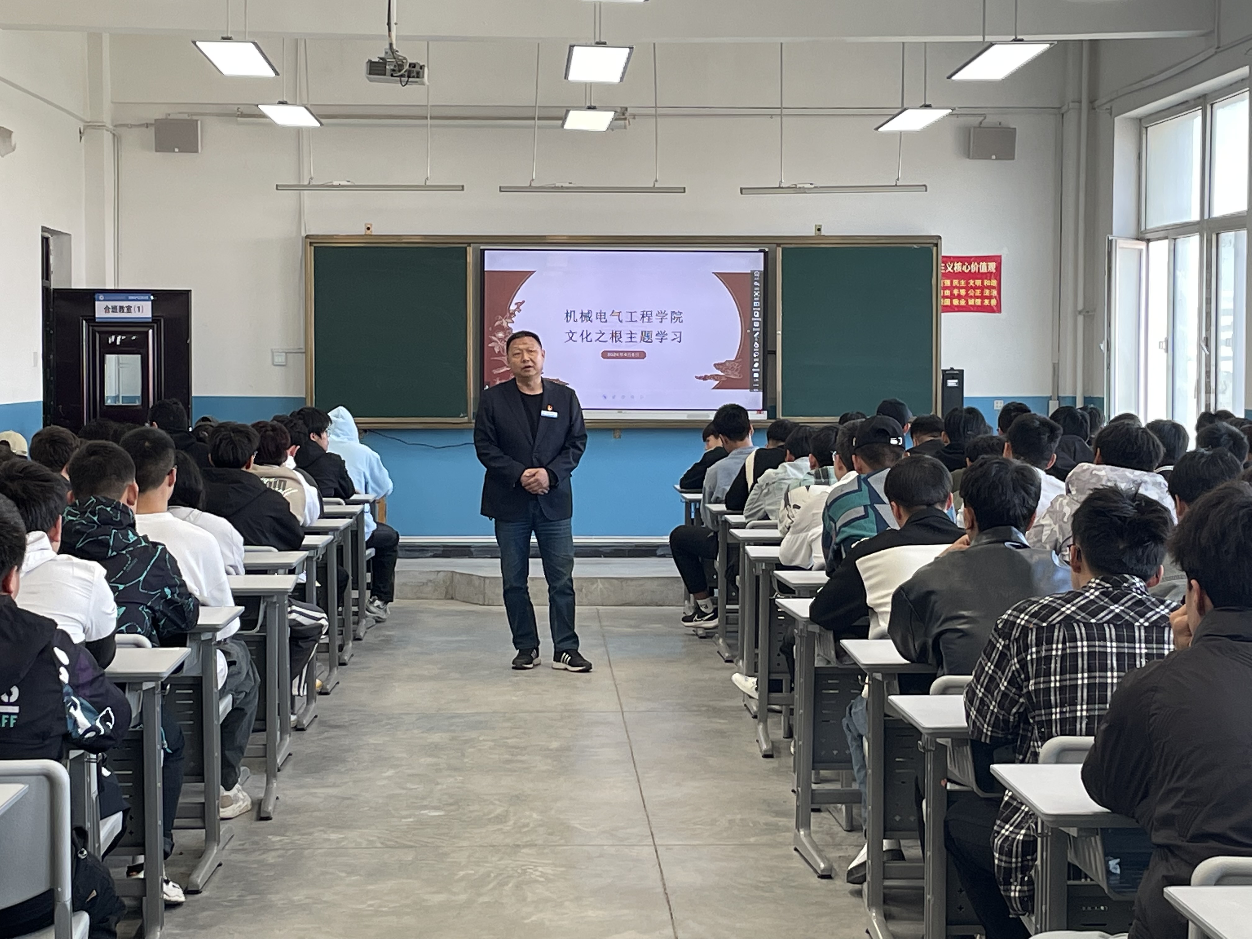 机械电气工程学院党总支书记辛延波介绍开展“行走中的思政课”——文化之根活动的意义,希望同学们在观影过程中深入领会钱学森爱国主义精神,深刻认识和传承老一辈科学家科教报国的情怀与追求卓越的品格,弘扬其无私奉献精神,在感悟钱老精神的同时思考自身的梦想与责任。