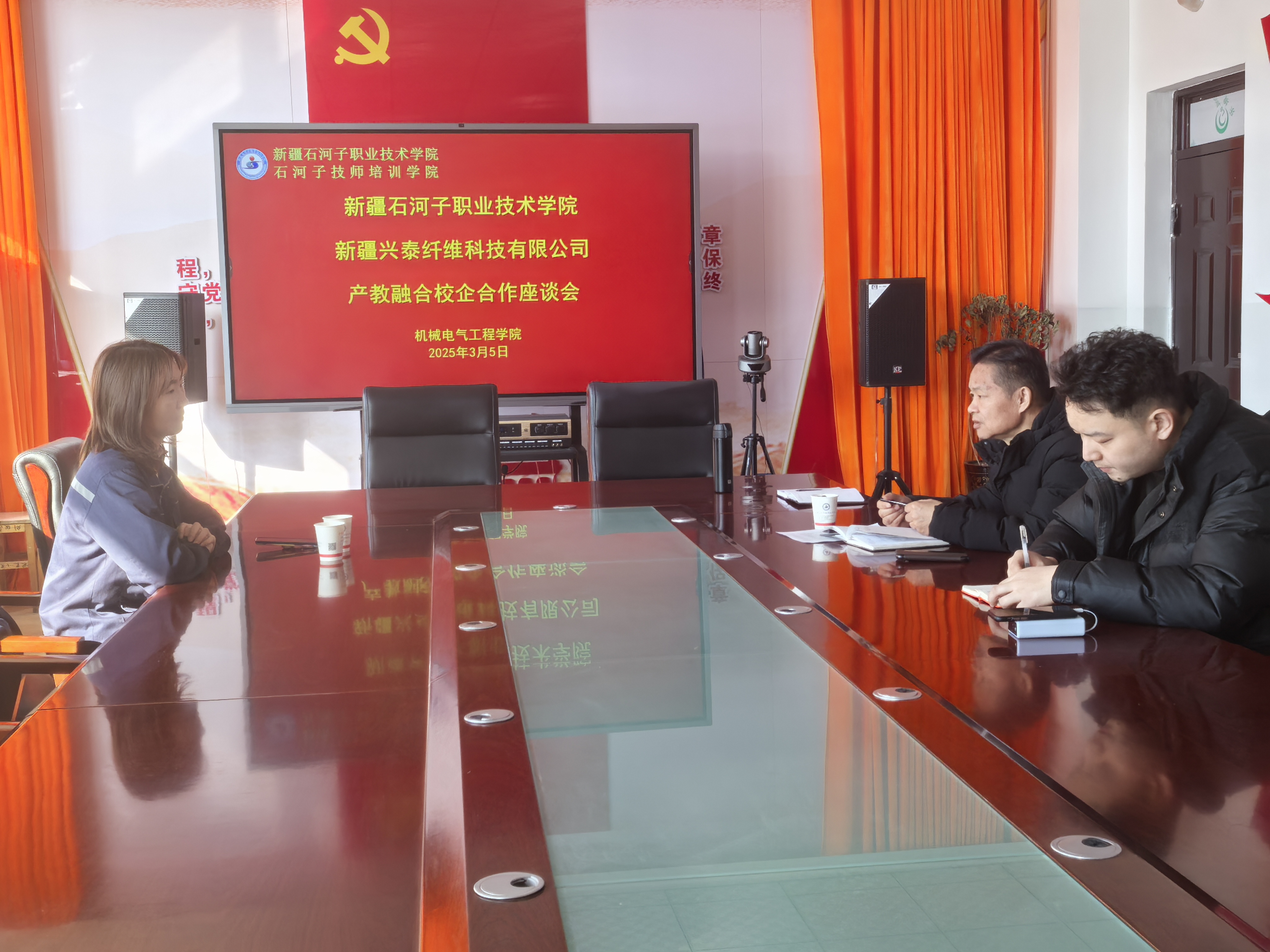 (王振坤 供稿)2025年3月5日,新疆兴泰纤维科技有限公司人力资源部部长牟芳芳到访机械电气工程学院开展交流座谈。机械电气工程学院院长顾建疆和实习就业办公室教师参加座谈。