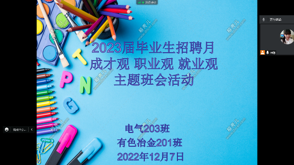 为培养当代大学生成才观、职业观、就业观,千方百计促进2023届兵团高校毕业生更高质量、更充分就业。机械电气工程分院根据学院就业办校园招聘月系列活动专项工作安排,我分院毕业生辅导员分批次分专业在各个班级召开就业育人主题教育活动,主要通过线上主题班会的形式,引导学生把个人成长成才、毕业就业等理想和追求融入现代化国家建设新征程。