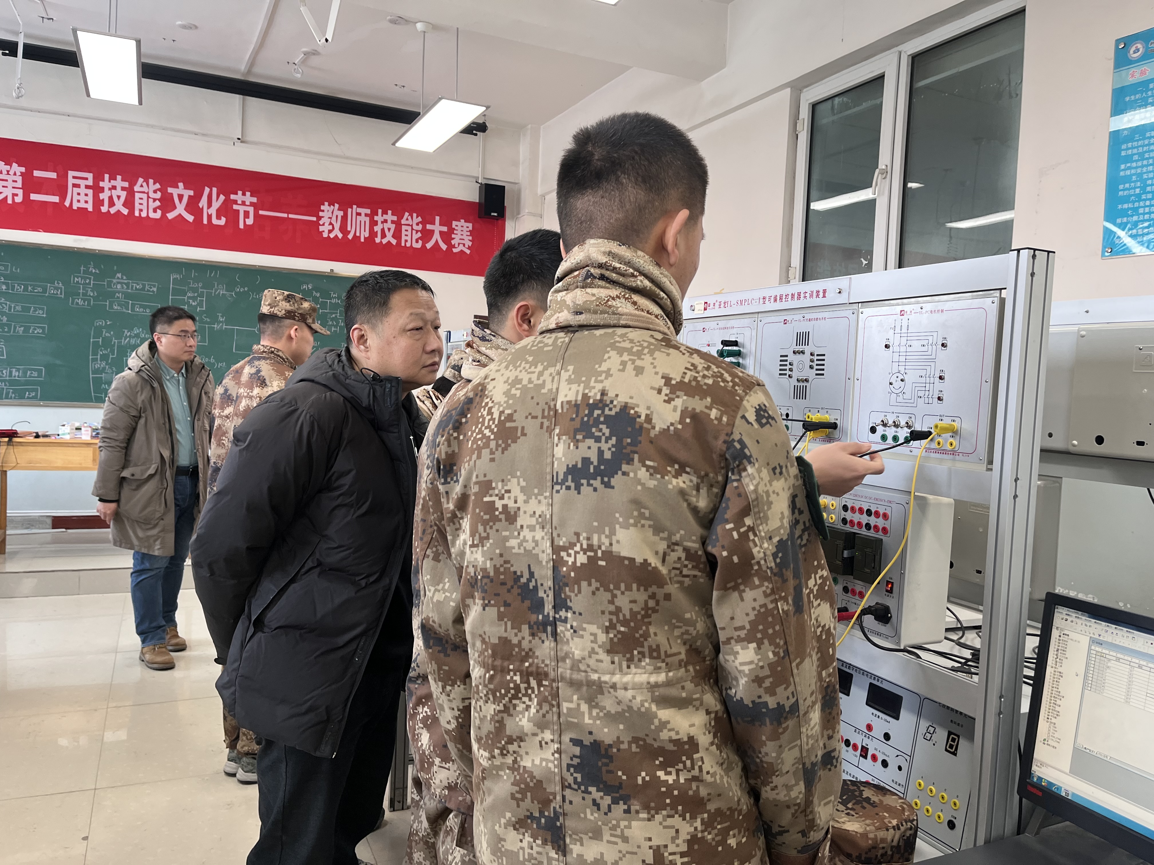2024年2月23日机械电气工程学院党总支书记辛延波、副院长尹君深入实训室检查陆军军士生入营考核培训情况。本次入营考核突出陆军军种特点,着重体现技能操作水平,对基础薄弱的学生进行严格监督。