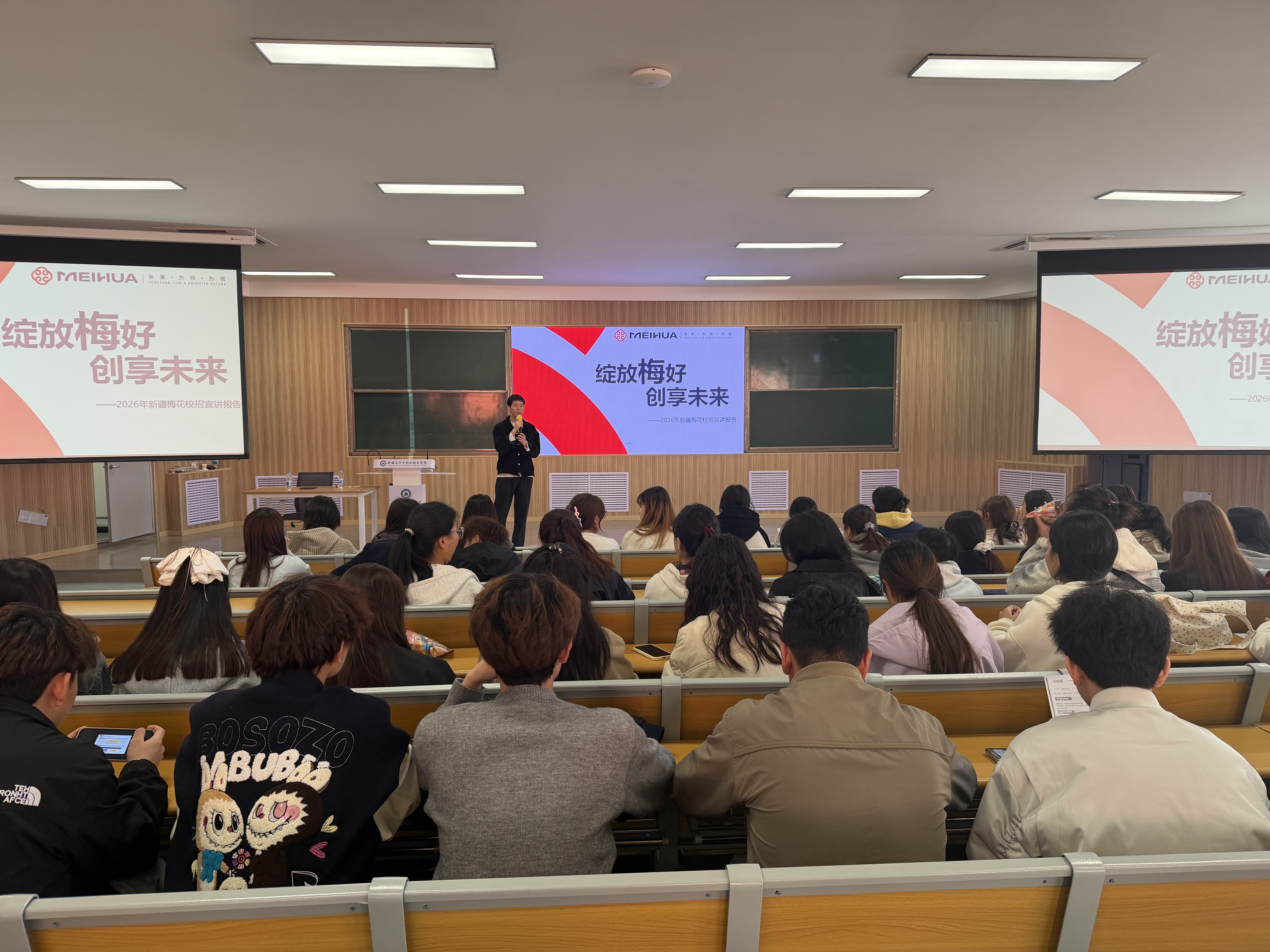 请进来宣讲,精准对接搭桥梁。为搭建校企供需“零距离”对接平台,学院精准筛选与食品、化工等专业高度契合的优质企业,积极邀请新疆梅花氨基酸有限责任公司、新疆顶益食品有限公司、新疆新康农业发展有限公司等多家企业进校园,开展专场招聘宣讲会。宣讲现场,企业代表通过PPT演示、案例分享、互动答疑等形式,全面介绍企业发展概况、企业文化、核心业务、岗位需求及职业发展路径,细致解读薪酬福利、晋升机制等毕业生关心的问题。同时,企业现场设置咨询台,接收毕业生简历、开展初步面试,与毕业生面对面沟通交流,精准匹配岗位需求,有效提升了就业对接效率,让毕业生足不出校就能了解行业动态、对接优质岗位。
