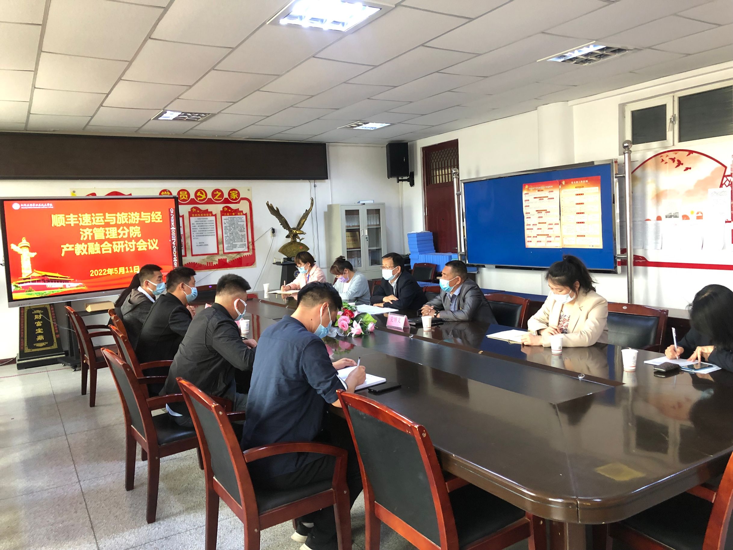 (史彦报道)2022年5月11日,旅游与经济管理分院邀请石河子顺丰速运有限公司来校开展产教融合研讨活动。来访人员有石河子顺丰速运负责人王国翔、南区产教融合实训基地负责人高海龙、郭盛华,参加此次研讨会的主要成员有旅游与经济管理分院书记党博文、院长栗劲松及各教研室主任。