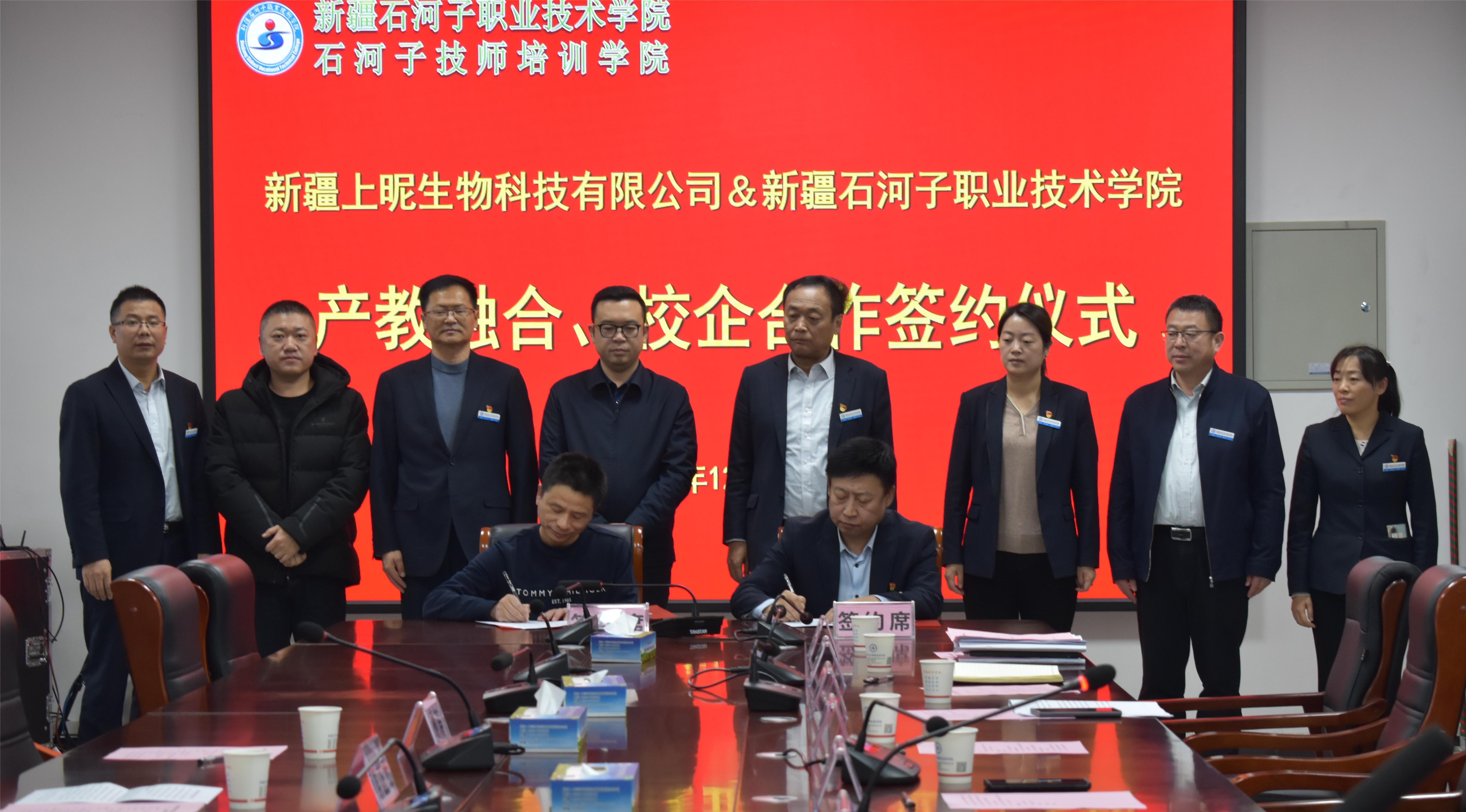 熊正军总经理与院长林炯签订合作协议,史文革书记为新疆上昵生物科技有限公司授牌。根据合作协议,双方将坚持“共建服务基地,服务就业创业”的原则,合作共建产学研结合示范基地,为学生搭建教学实践、实习和创业平台;共同探索和开展“订单式人才培养与输送方案”,共同培养、选拔高技能人才进行订单式培养与推荐;进一步加强教师等人力资源的共享,着力打造高质量双师型教师队伍,共同提升双方科技支撑和人才智力支持;进行定期或不定期的教学工作研讨,推动双方发展动能更足、质量更优。