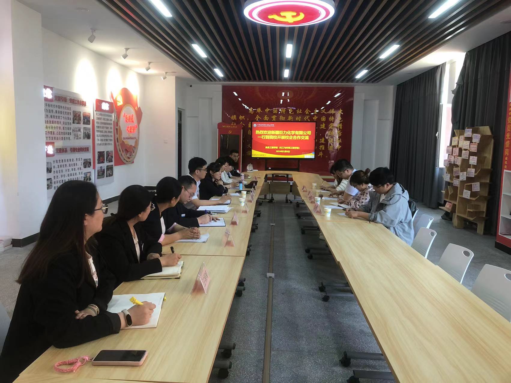(石妍 报道)2024年5月8日下午,化工与环境工程学院与新疆巨力化学有限公司在鸿智楼A106会议室召开校企合作座谈会。新疆巨力化学有限公司综合办公室主任宋昱桥、人力资源管理模块经理徐芬、企业相关工作人员及学院化工专业全体教师参加座谈,会议由化工与环境工程学院党总支书记李晓华主持。