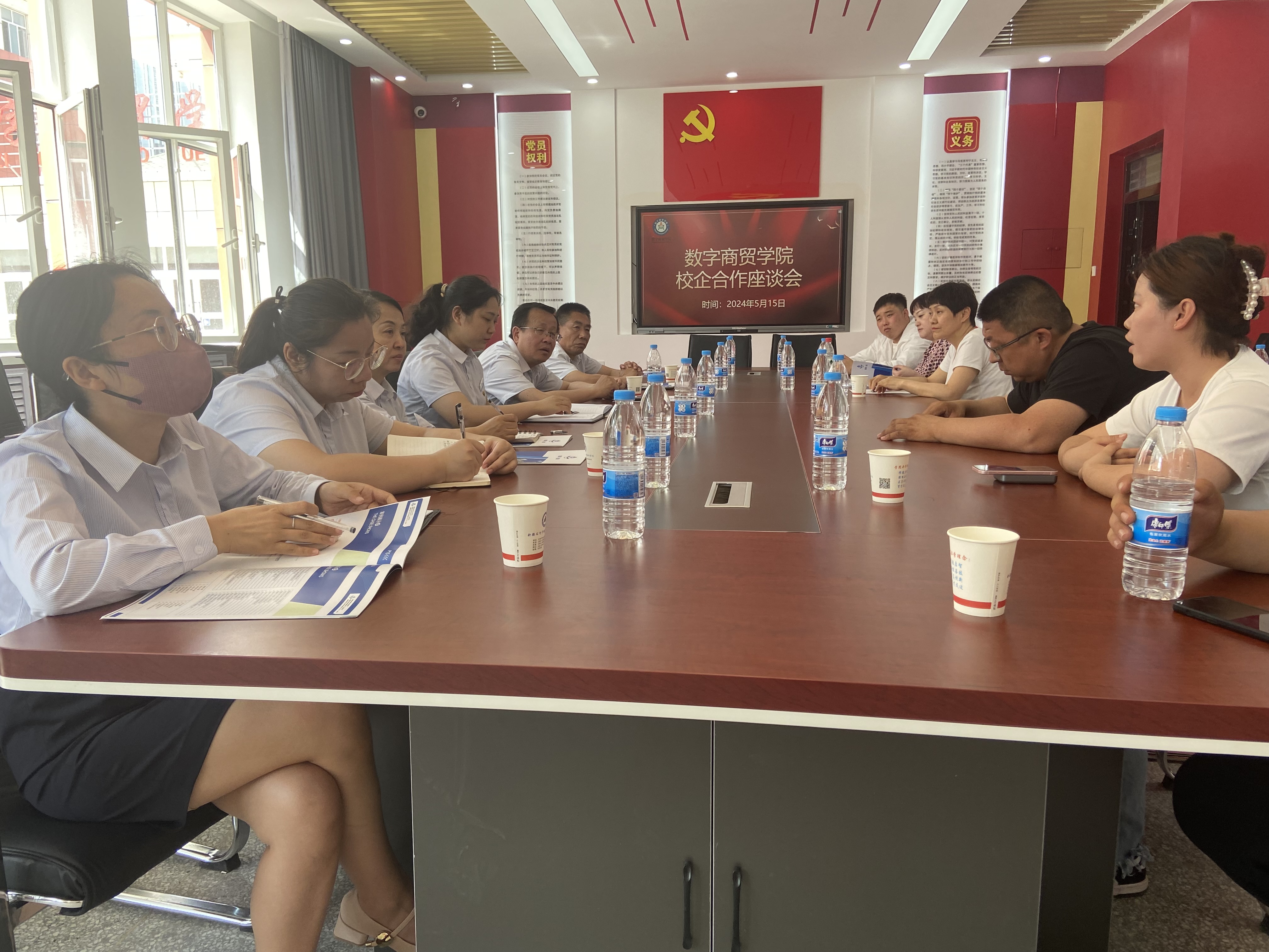 (刘春燕 报道)为深化校企合作,为学院学生提供更多实践平台和就业机会,2024年5月15日上午,数字商贸学院在学院职业教育活动周期间,以“学生企业面对面”精准对接双选会为契机,邀请相关企业开展校企合作座谈会。新疆新能有限责任会计师事务所(新疆新能工程项目管理有限公司)、石河子市文化旅游投资集团有限公司等9家企业应邀参会,数字商贸学院书记党博文、院长栗劲松及各专业负责人参加座谈。