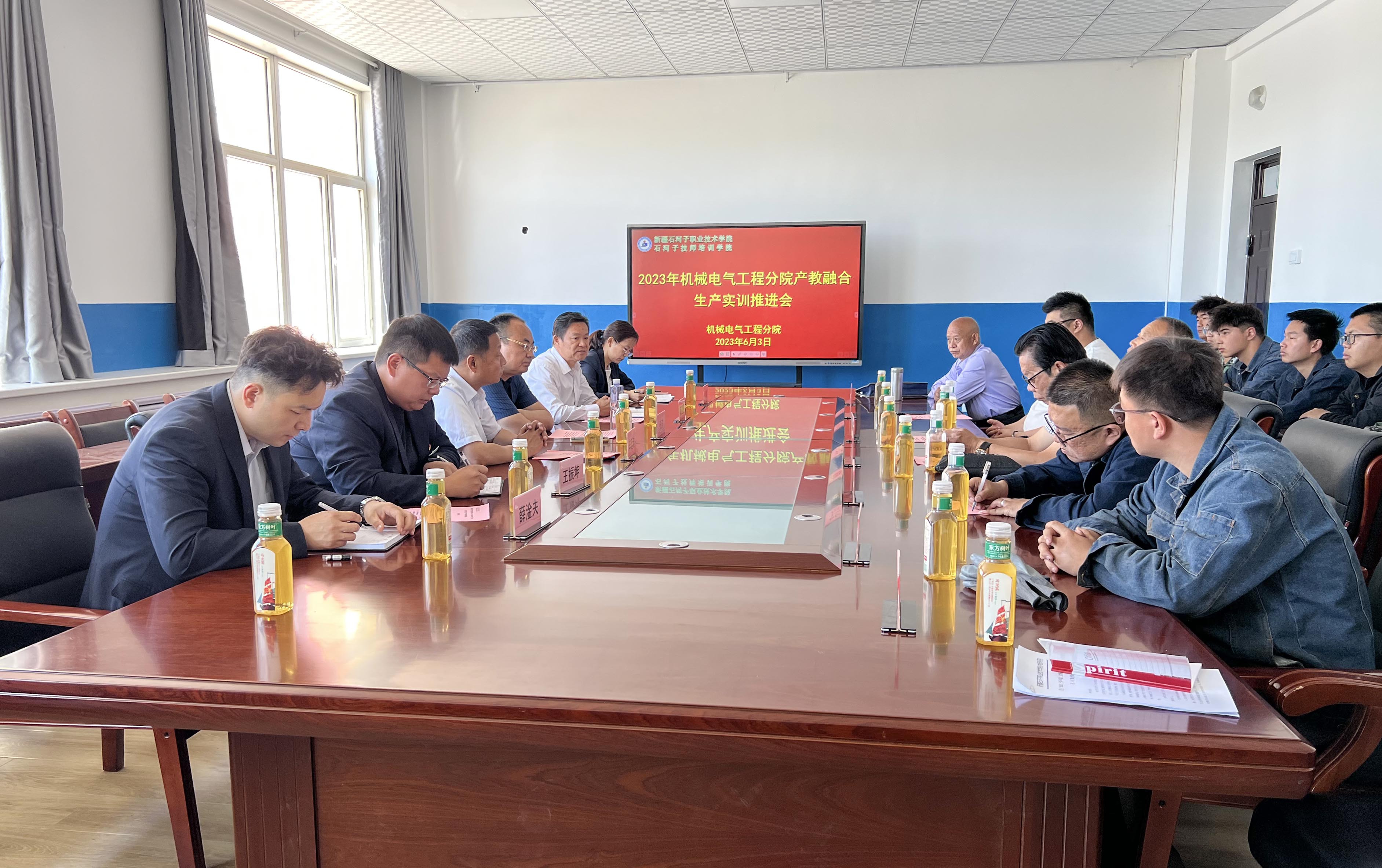 2023年6月3日,Beat365中文官方网站机械电气工程分院与合作企业石河子胜利硬面工程技术有限公司在机电楼215开展“产教融合、生产实训”推进会。学院纪委书记张涛、机电分院党总支书记辛延波、分院院长顾建疆及多名师生与企业负责人张拥军、技术经理董峰、项目负责人张逸飞参加会议。此次推进会是学院在产教融合方面的重要积极探索交流,推进学院“产教融合、工学交替”双主体育人模式改革,提升师生实训教学新认知、新体验,创新新思路。