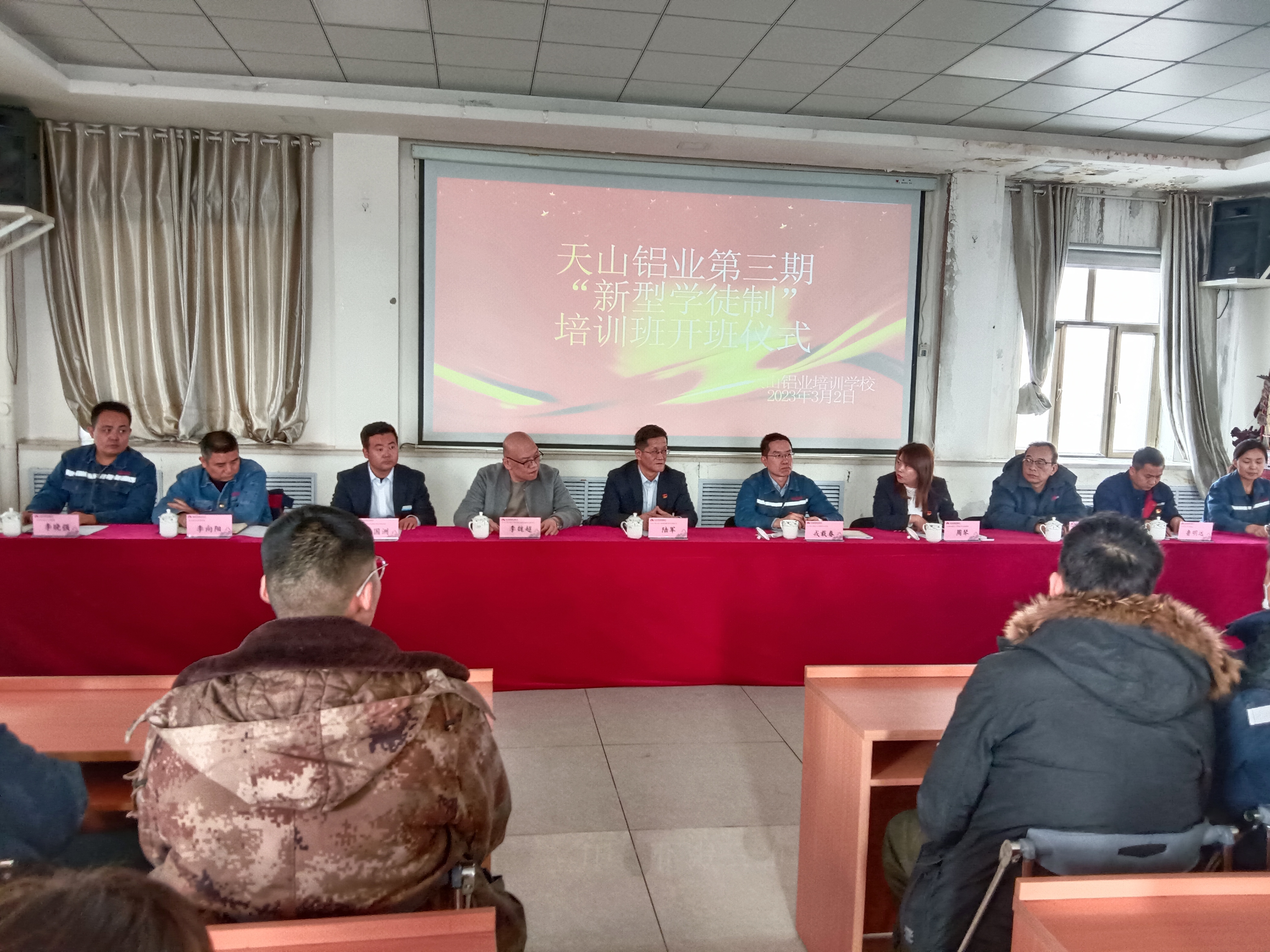 (岳碧娥报道)2023年3月2日下午,Beat365中文官方网站技能培训分院与新疆天山铝业集团联合举办第三期企业新型学徒制技能培训班开班典礼,天山铝业集团公司人力资源中心总监戎载春、电解铝事业部总经理助理刘永红、天展新材料生产副总经理李晓强、技能培训分院书记李魏超、院长陆军及相关授课教师出席了开班典礼。