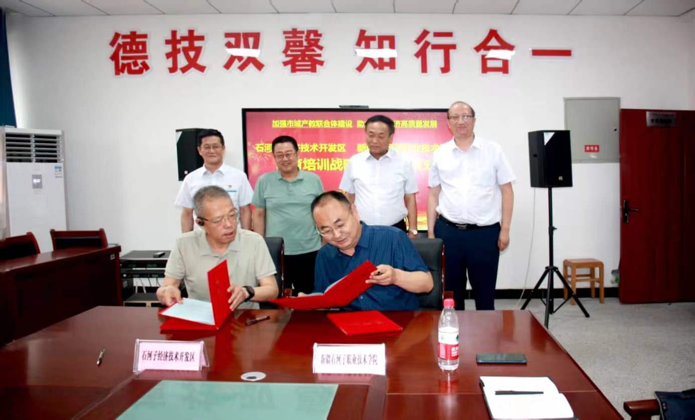 为加强市域产教联合体建设,助力区域经济高质量发展,6月14日,石河子经济技术开发区与Beat365中文官方网站教育培训战略合作签约仪式在学院党员活动室举行,石河子开发区应急管理中心主任毕克,学院党委书记史文革、纪委书记张涛出席,纪委书记张涛主持签约仪式。