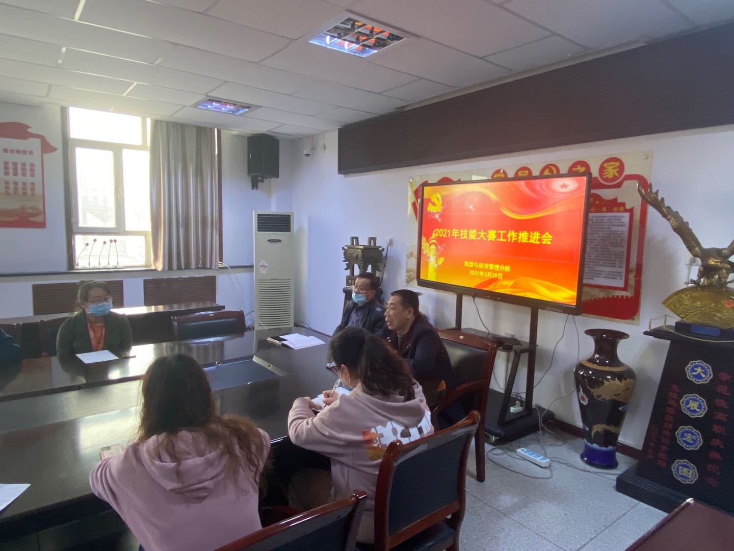 2021年自治区职业院校技能大赛暨全国职业院校技能大赛选拔赛启动在即,为全面做好大赛各项工作,3月29日下午,旅游与经济管理分院召开技能大赛工作推进会。会议由分院院长栗劲松主持,分院书记党博文出席会议并讲话,分院副院长曾娅丽、参赛教研室主任、大赛项目负责人及全体指导教师等二十余人参加会议。