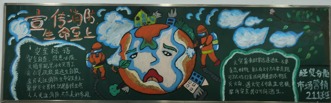 为进一步加强学校安全工作,营造安全、稳定、和谐的校园环境,增强学校师生消防安全意识,了解消防安全知识,提高紧急逃生能力,旅游与经济管理分院开展了以“宣传消防,生命至上”为主题的黑板报、新闻稿、展板、主题班会等一系列活动。通过这次消防安全教育系列活动,提高了学生自我教育、自我防护的意识和能力,使广大师生提高消防安全意识,切实营造消防安全人人有责、人人参与的良好氛围。