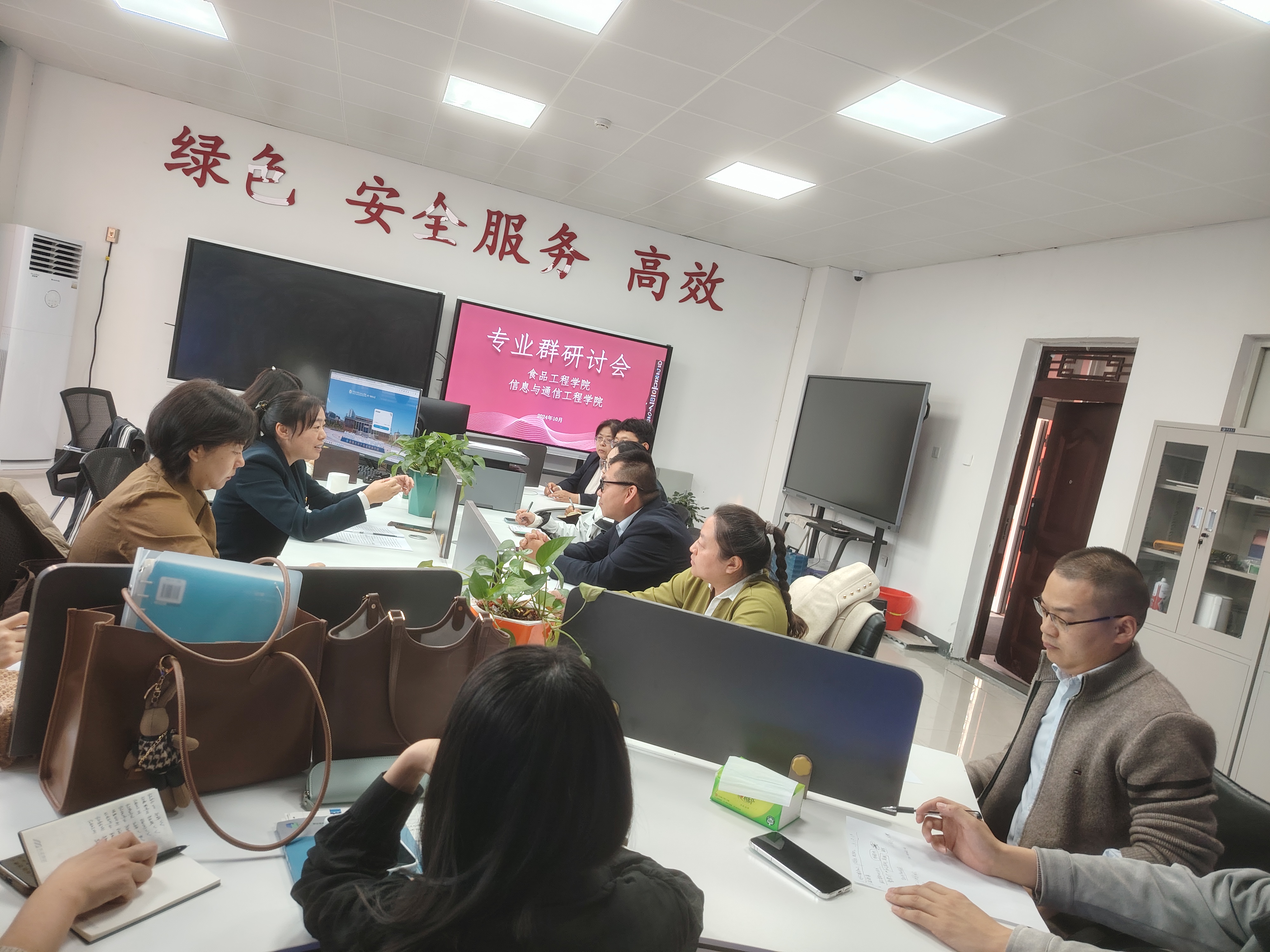 进一步提升教师教育教学质量和科研创新能力,2024年10月22日,食品工程学院和信息与通信工程学院联合开展食品智能加工技术专业群建设研讨会,食品工程学院党总支书记李晓华、信息与通信工程学院院长荣喜峰、相关教研室的全体教师参加了本次会议。