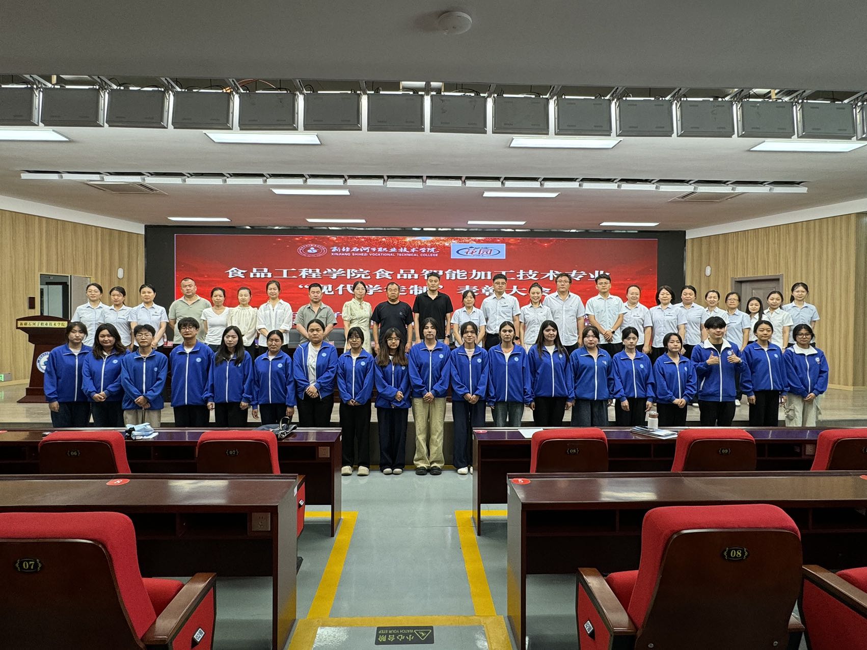 (年国芳 报道)2025年6月24日下午,食品工程学院“现代学徒制”表彰大会在宏智楼一楼会议室举行。新疆石河子花园乳业有限公司天山分公司总经理钱浩、厂长赵祥龙及部门负责人,食品工程学院党总支书记李晓华,副院长武亮、石妍,食品教研室教师参加会议,会议由副院长石妍主持。