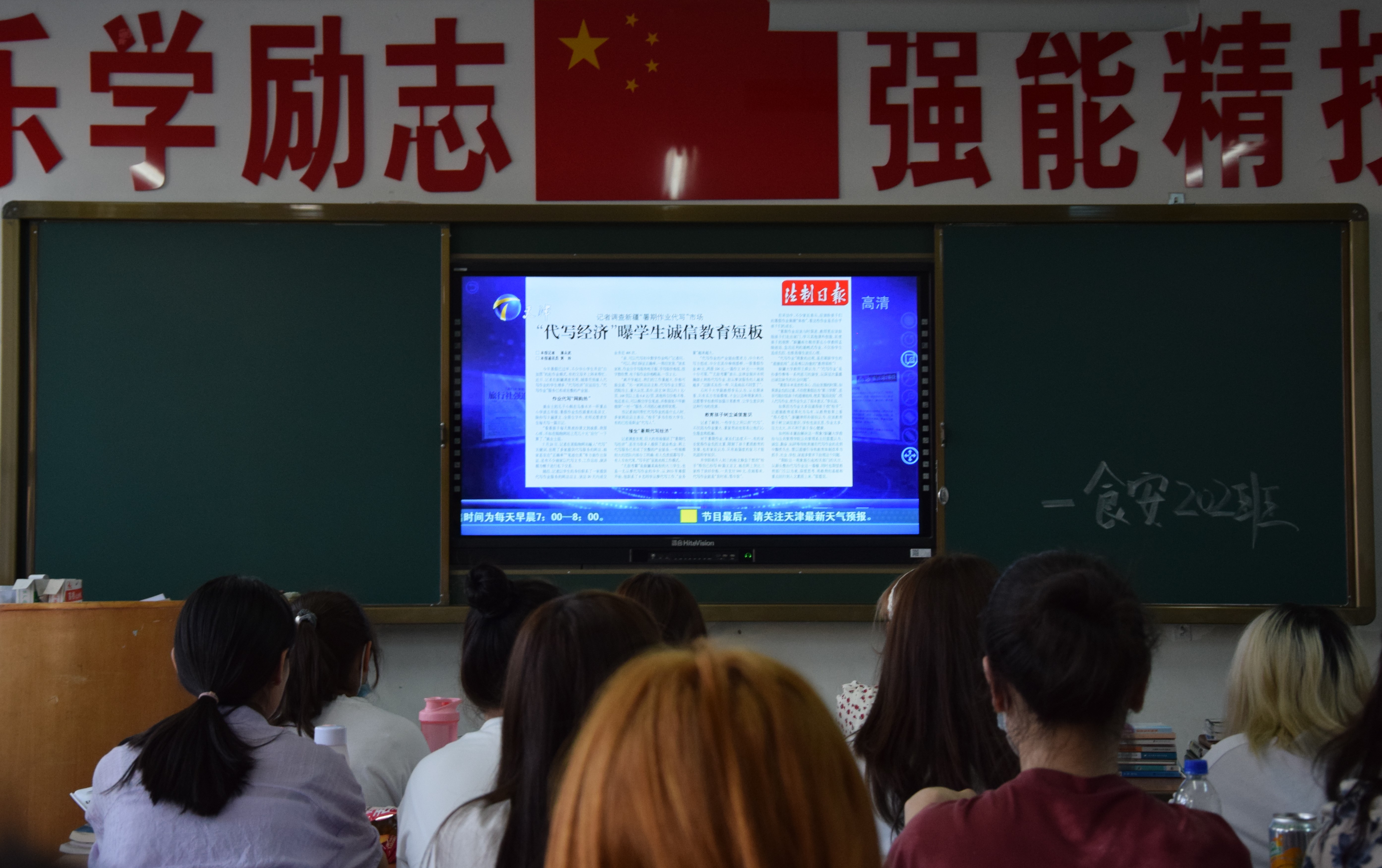 6月7日,轻纺化工分院利用晚自习期间组织分院18个班级观看并学习了以诚信教育为主题的视频,视频中充分展示了在当今社会上诚信的重要性,同学们受益良多。