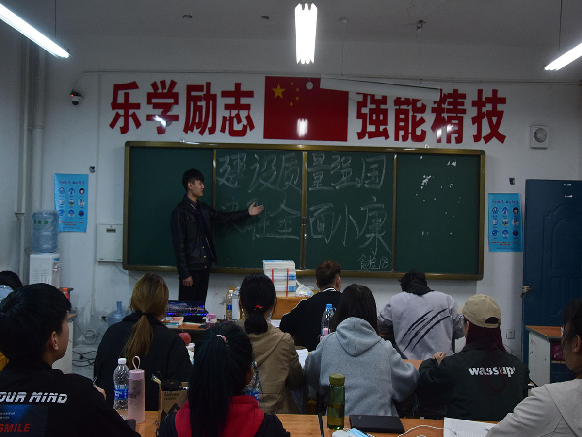 深入宣传贯彻习近平总书记关于推动高质量发展的重要论述,党中央、国务院关于建设质量强国的决策部署。利用传统媒体和新兴媒体平台,积极宣传各行各业基层单位和一线工作者在抗疫情、稳增长、提质量、增效益方面的典型事迹,在全社会弘扬追求卓越、崇尚质量的精神。轻纺化工分院于2020年10月15日晚自习时间开展了“建设质量强国,决胜全面小康”主题班会。