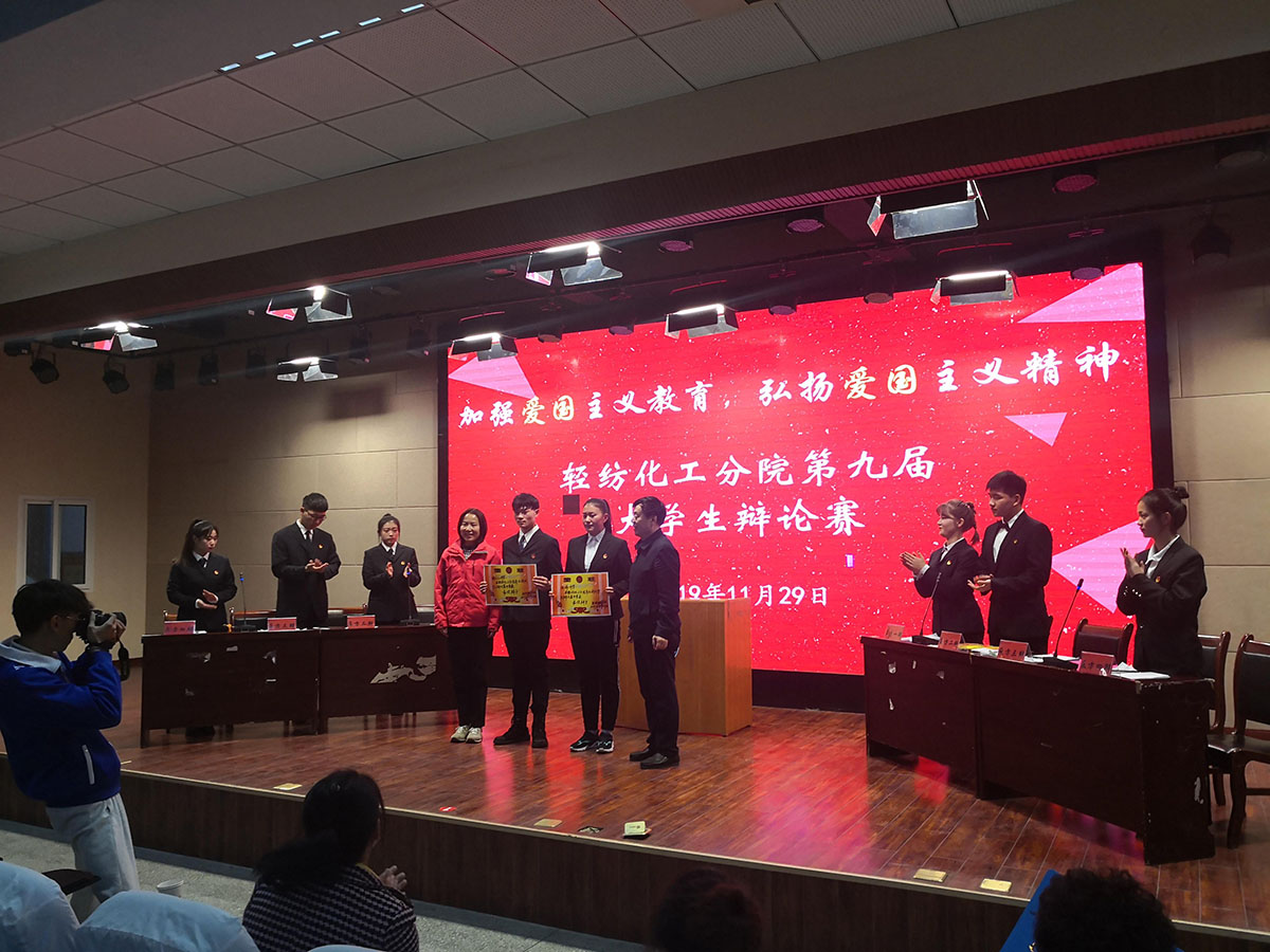 为增强轻纺化同学们的爱国情怀、加强爱国主义教育、弘扬爱国主义精神为培养大家的思辨能力和语言表达能力。11月29日下午,轻纺化工分院举办了“加强爱国主义教育,弘扬爱国精神”第九届大学生辩论赛(决赛)。莅临本次比赛现场的有Beat365中文官方网站党委书记陈立新、机关处室的领导老师以及轻纺化工分院的老师们。