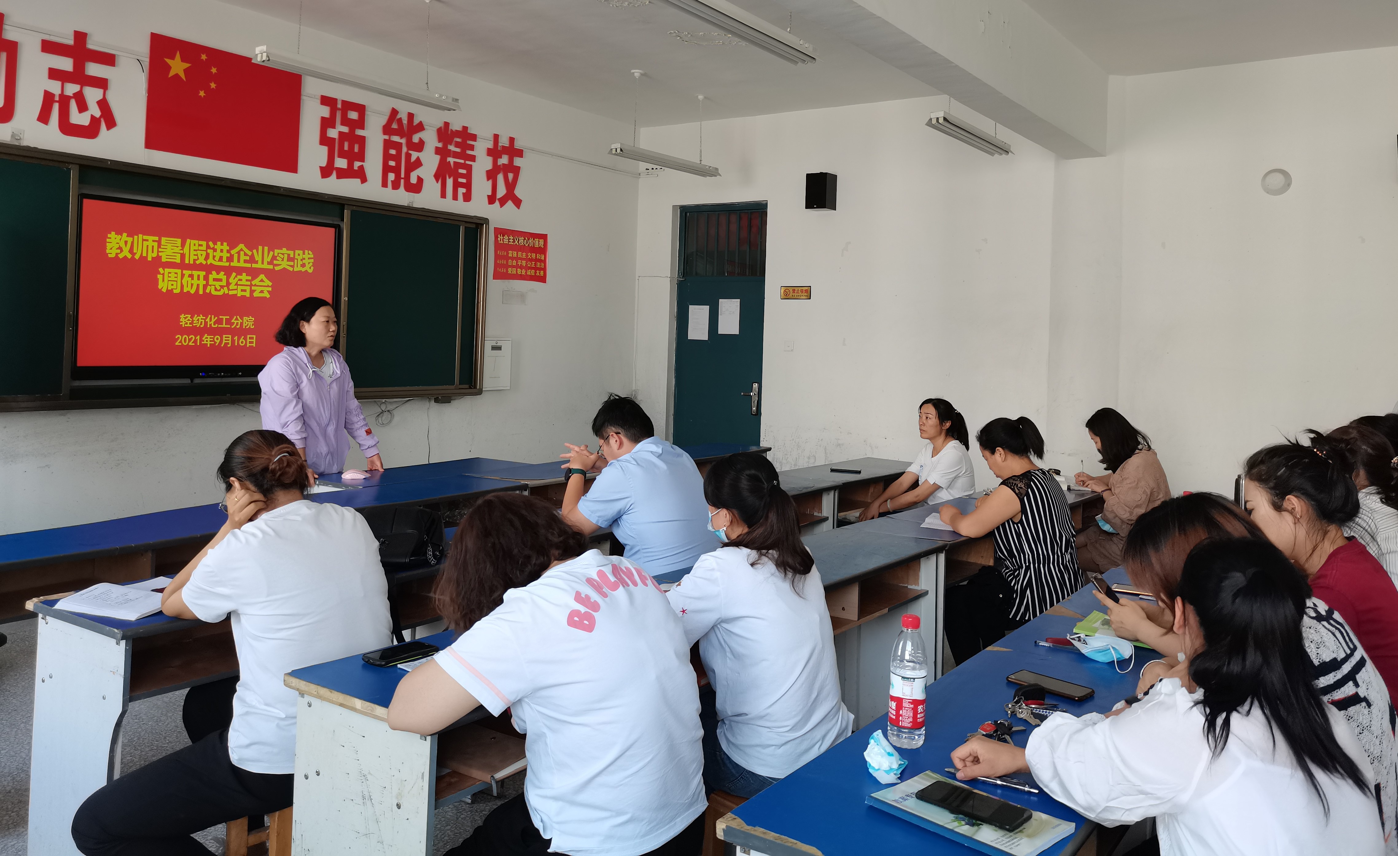 2021年9月16日,轻纺化工分院组织召开暑期教师进企业实践总结会,分院领导及各个教研室教师参加会议。