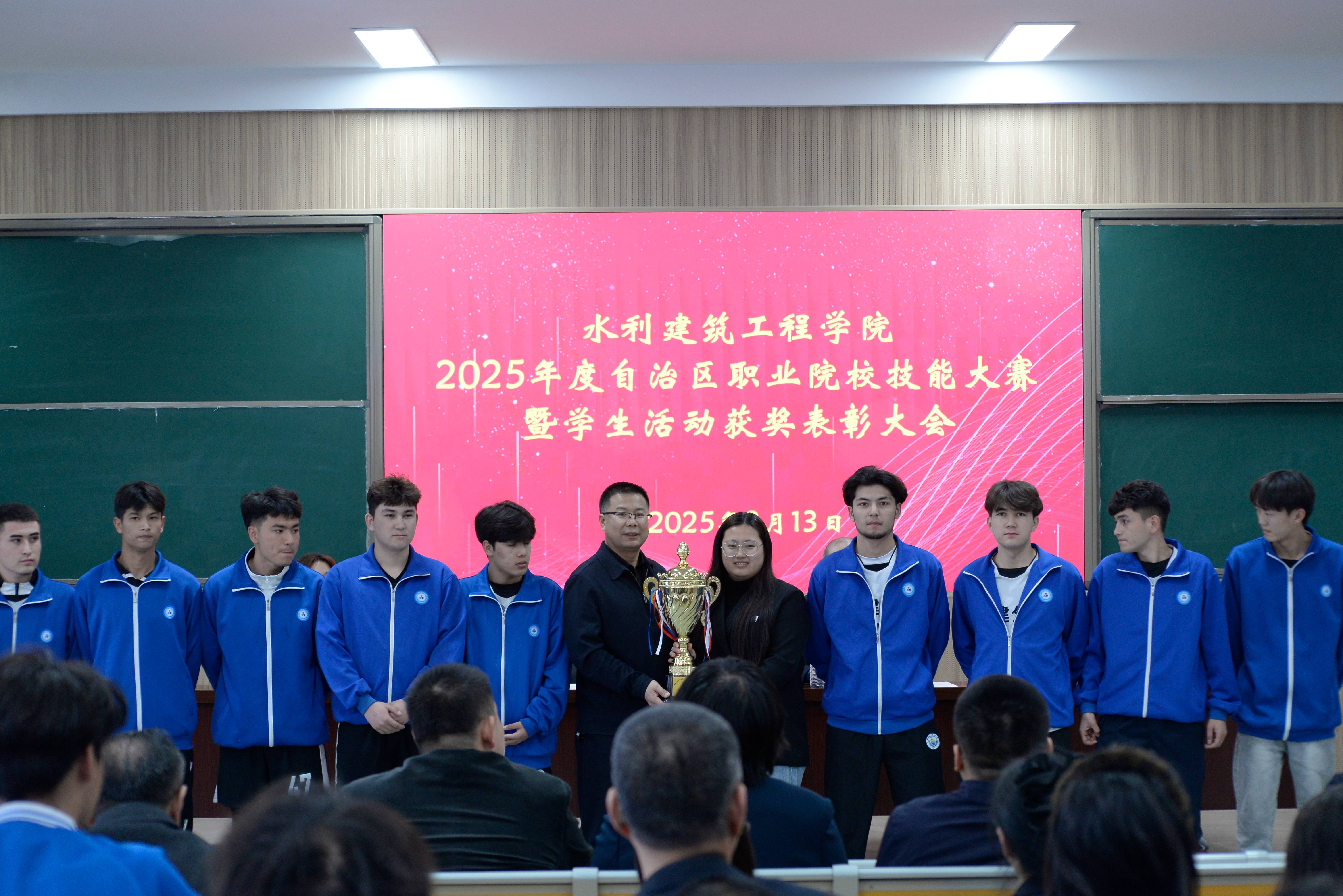 大会在庄严的国歌声中拉开帷幕。学院领导为在2025新疆职业院校技能大赛中斩获佳绩的师生颁发荣誉证书与奖杯。张金果副院长对获奖的师生表示热烈的祝贺,称赞师生在大赛中展现出的专业能力与拼搏精神,他指出技能大赛是专业实力的比拼,是学校教育教学水平和人才培养质量的重要体现。通过师生们在大赛中的出色发挥,能够有力推动学校教育教学改革不断深入,促使人才培养迈向新的高度,为学校的长远发展注入源源不断的动力。获奖教师和学生也坚定地表示,面对即将到来的国赛他们将戒骄戒躁、再接再厉,全身心投入备赛,力求为学院争得更高的荣誉。