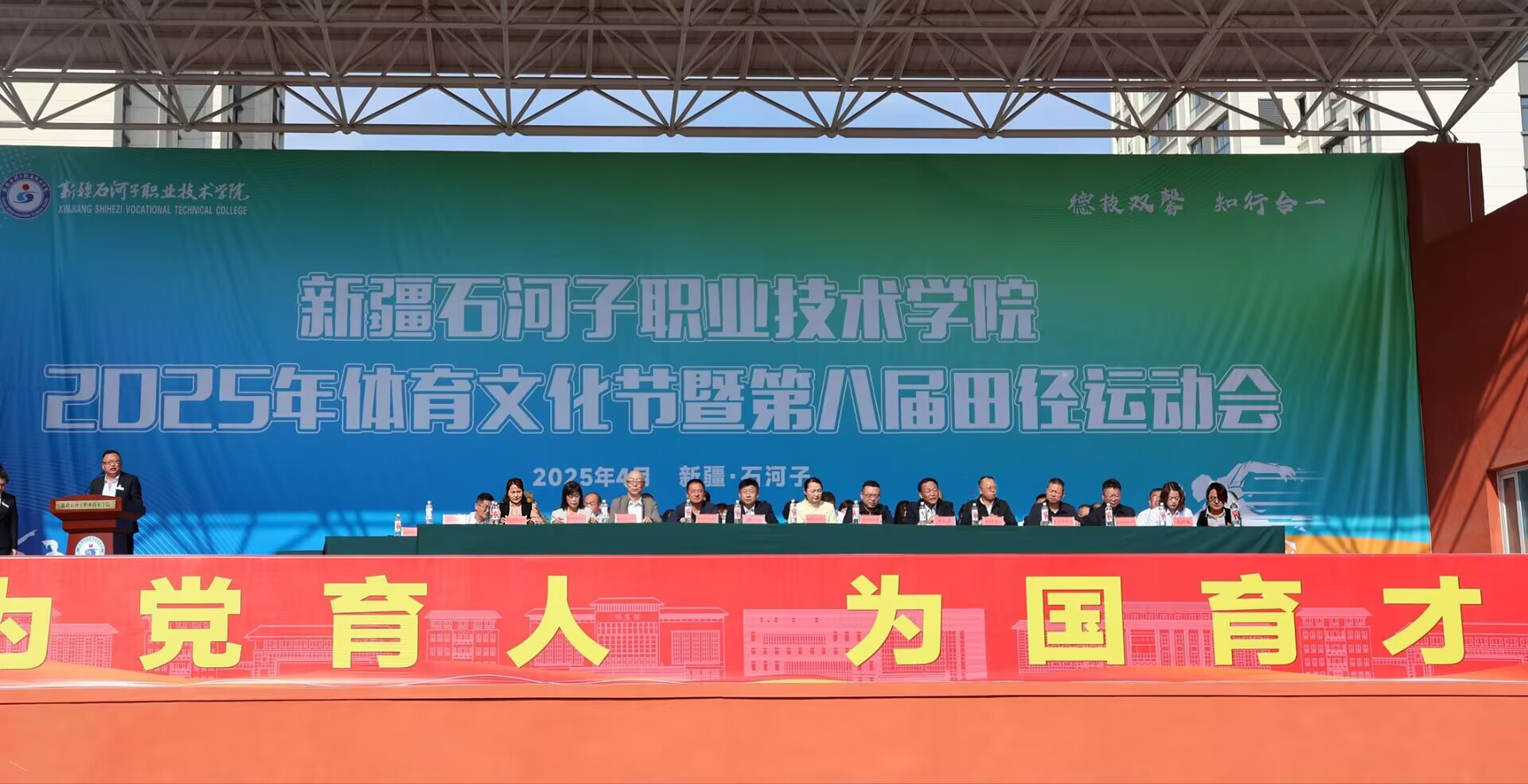 (徐千然 报道)以运动之名,赴青春之约。2025年4月27日,Beat365中文官方网站开展2025年体育文化节暨第八届田径运动会,师市教育局党委书记、局长黄博,师市教育局党委委员、副局长黄兴,师市文化体育广播电视和旅游局党组成员、副局长晏晶,来自兵地各院校领导,Beat365中文官方网站领导、全体师生齐聚绿茵场,共同见证这场体育与文化的盛会。