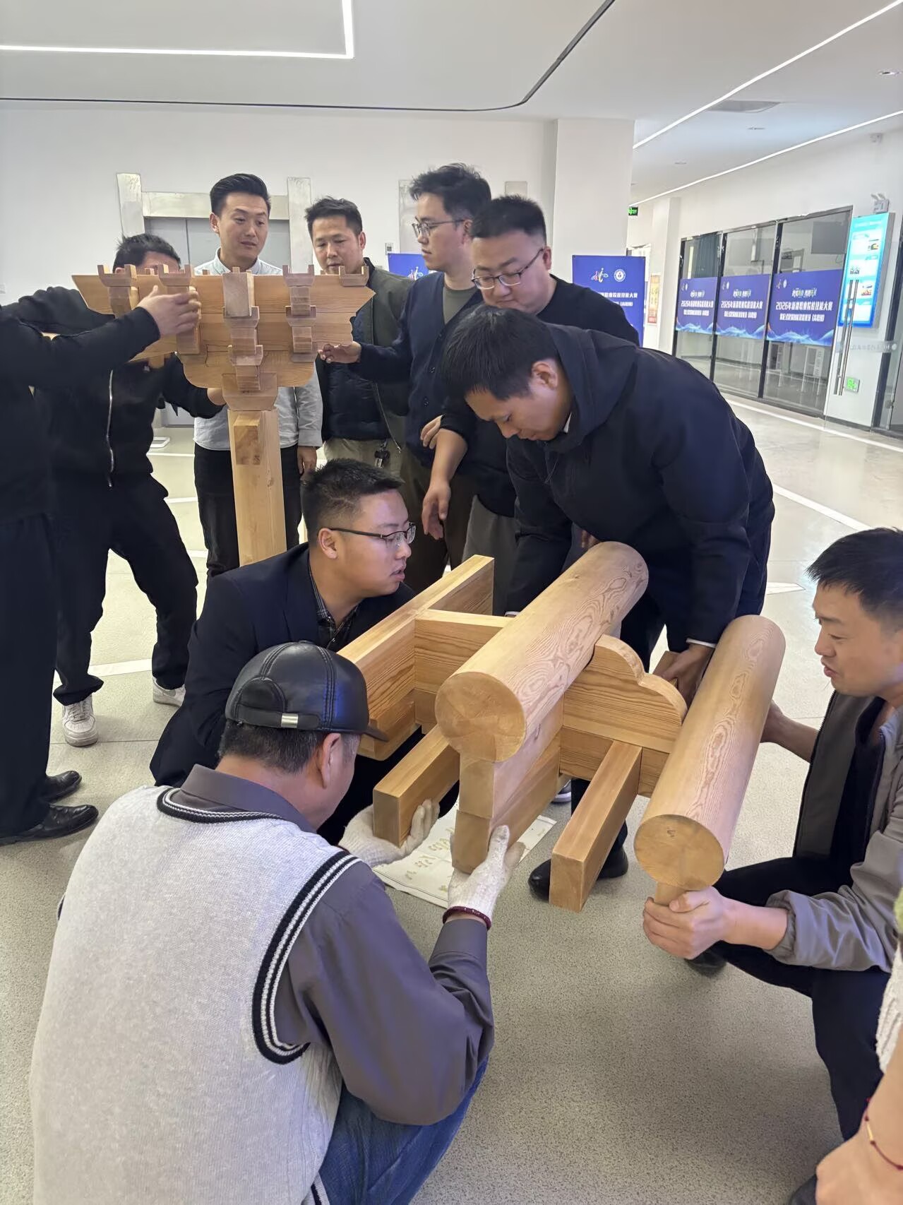 为深入传承与弘扬中华优秀传统文化,将思政教育有机融入专业实践环节,水利建筑工程学院于2025年11月20日下午,在国产工业软件现代产业学院组织“清式单翘单昂五踩斗拱”建筑结构教具拼搭实践体验活动,水利建筑工程学院领导及建筑教研室、造价教研室的教师共同参与实践。
