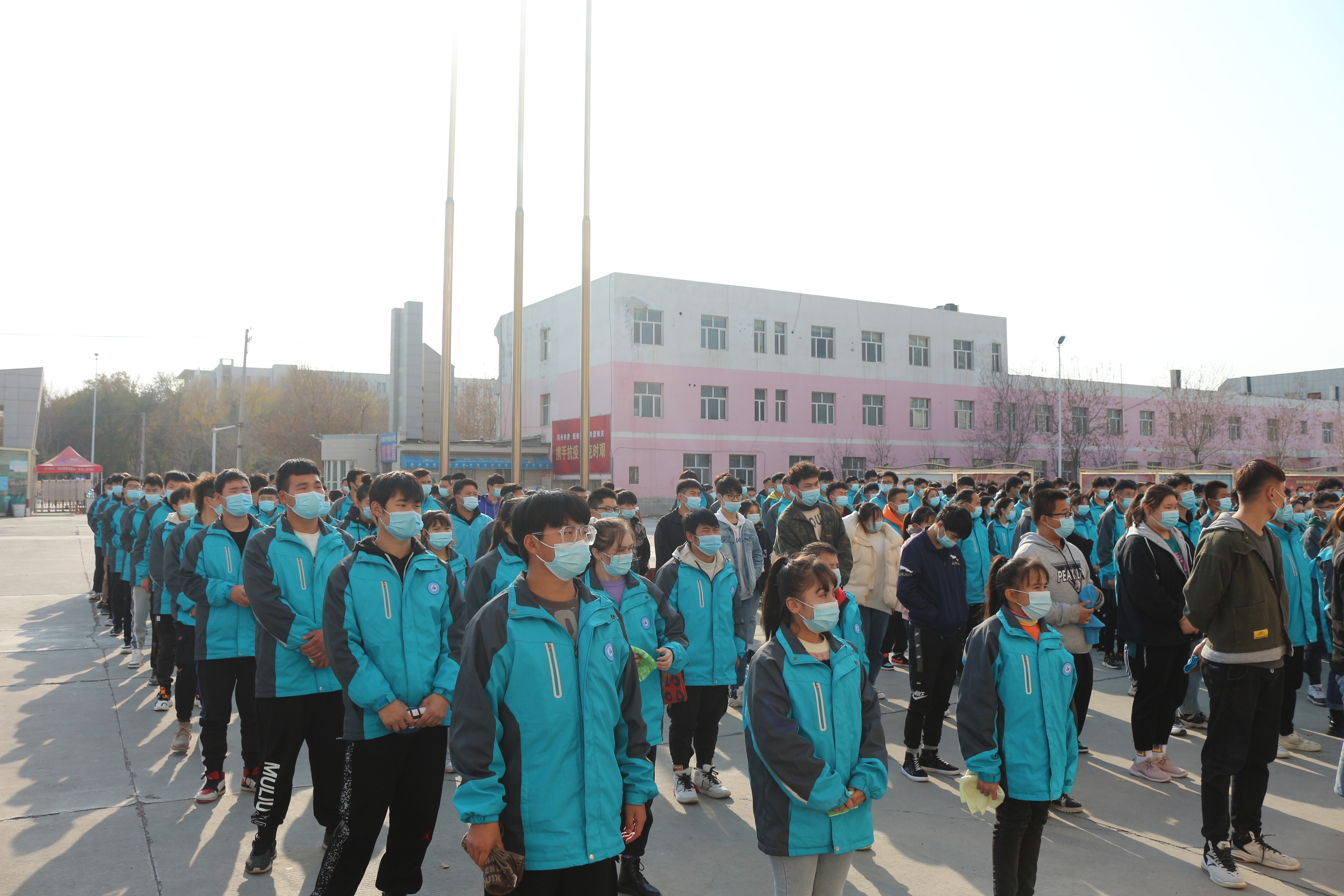 演练前,学生会成员认真的向每个班指出逃生通道和顺序并告诉大家疏散时不乱、不慌,注意安全。学生会成员负责本次演习的警报铃声,15点05分学校拉响警报,学生会成员迅速组织学生排队疏散,老师们也提前在自己的任务点配合疏散学生。所有学生弯腰,低姿,一手用毛巾捂住口鼻,一手扶墙或栏杆,沿着指定楼梯口快速有序撤离,来到前楼国旗杆下安全地带,共耗时3分钟。 随后按班清点人数,由各班负责人向演练负责人报告各班疏散到位情况,并最终确认分院全体师生安全疏散完毕。
